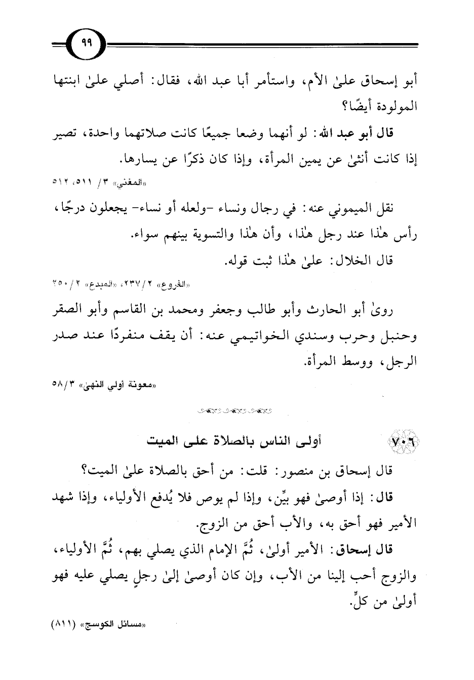 أبو إسحاق على الأم، واستأمر أبا عبد اللَّه، فقال: أصلي على ابنتها المولودة أيضًا؟