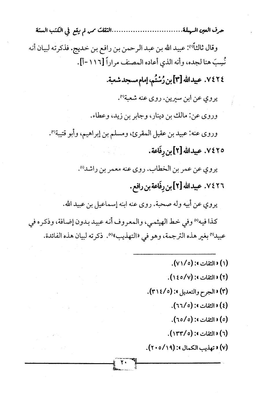 7426 - عبيد الله [2] بن رِفَاعة بن رافع.