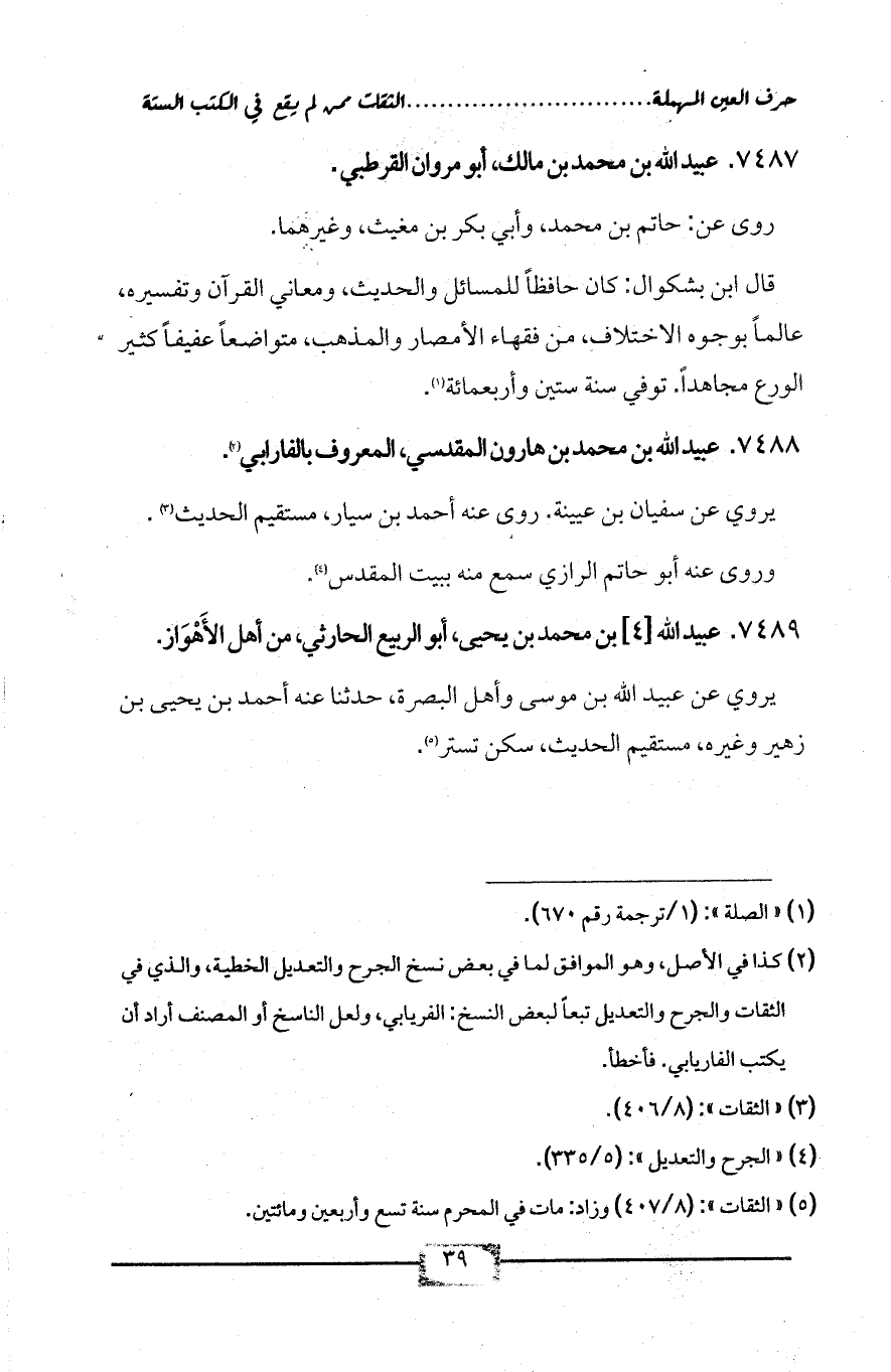 7488 - عبيد الله بن محمد بن هارون المقدسي، المعروف بالفارابي (¬2).
