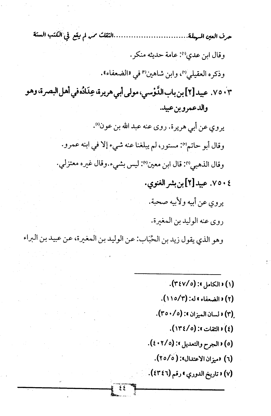 7503 - عبيد [2] بن باب الدَّوْسي، مولى أبي هريرة، عِدَادُه في أهل البصرة، وهو والد عمرو بن عبيد.