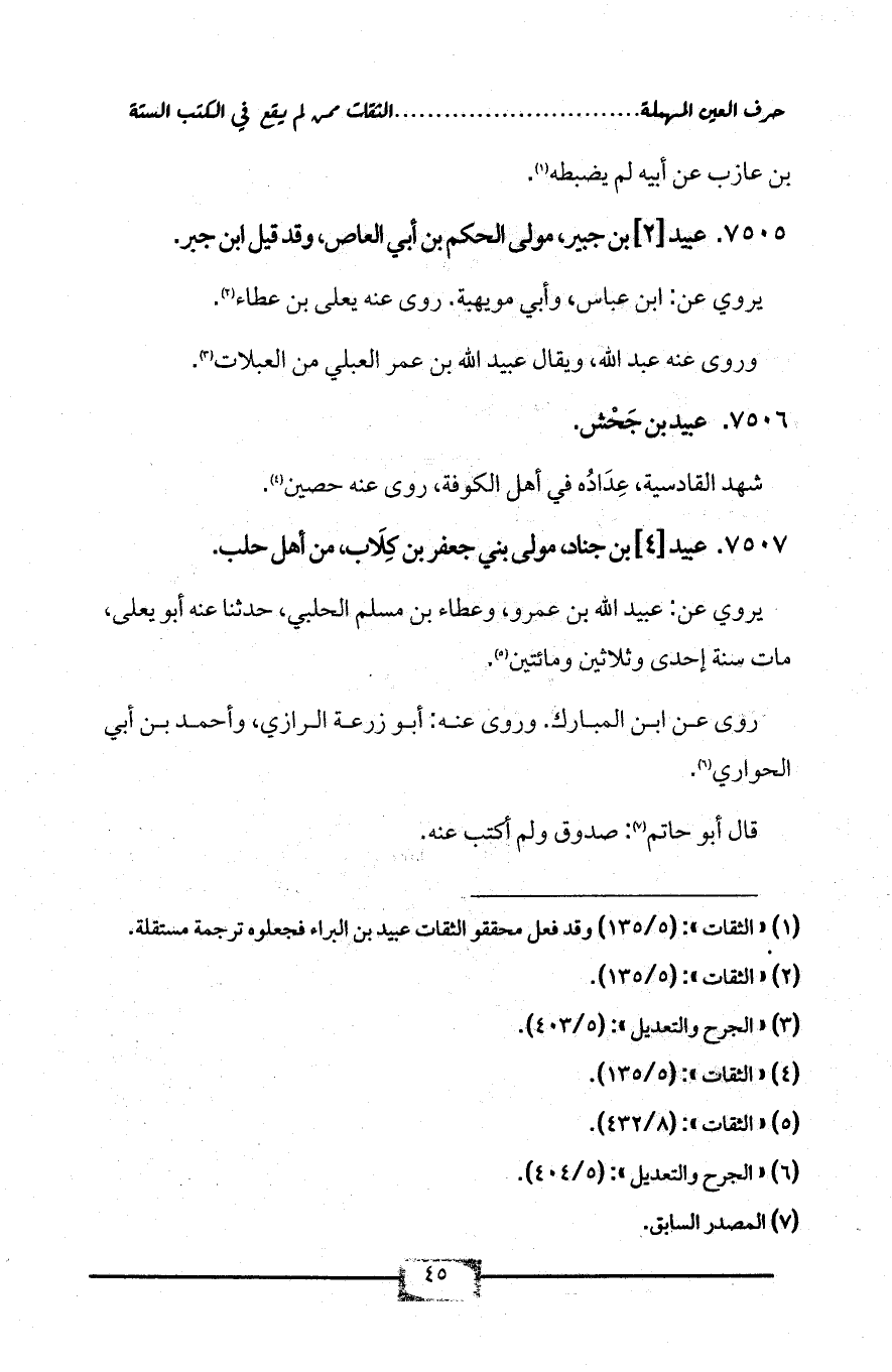 7507 - عبيد [4] بن جناد، مولى بني جعفر بن كِلَاب، من أهل حلب.
