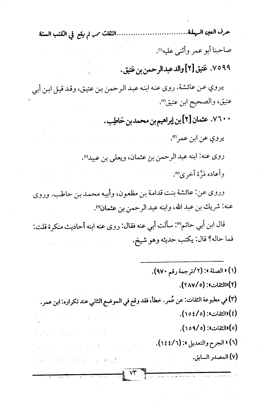 كتاب الثقات ممن لم يقع في الكتب الستة (اسم الجزء: 7)