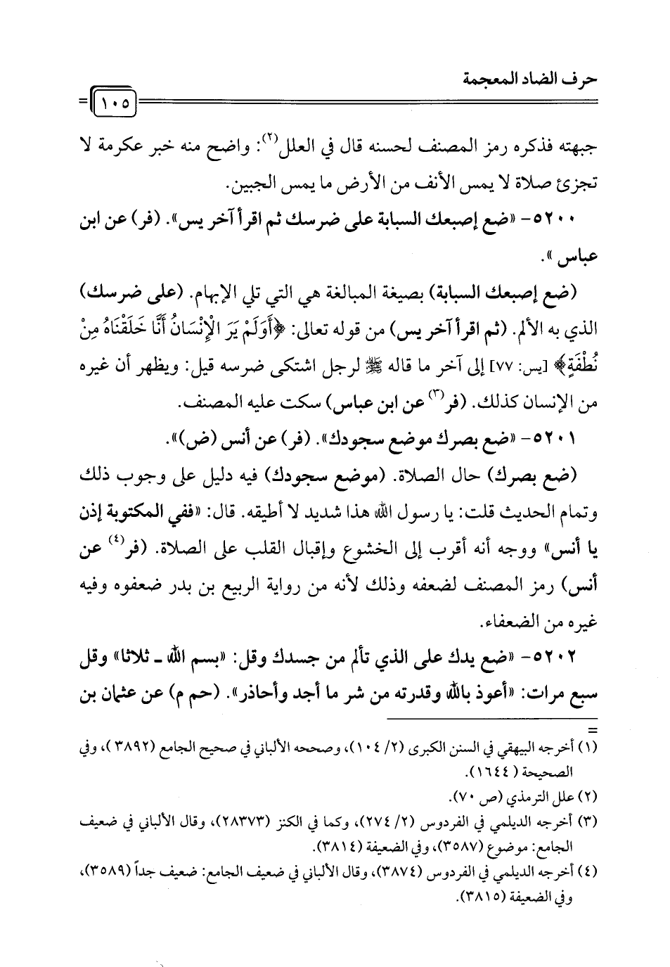 5201 - "ضع بصرك موضع سجودك". (فر) عن أنس (ض) ".