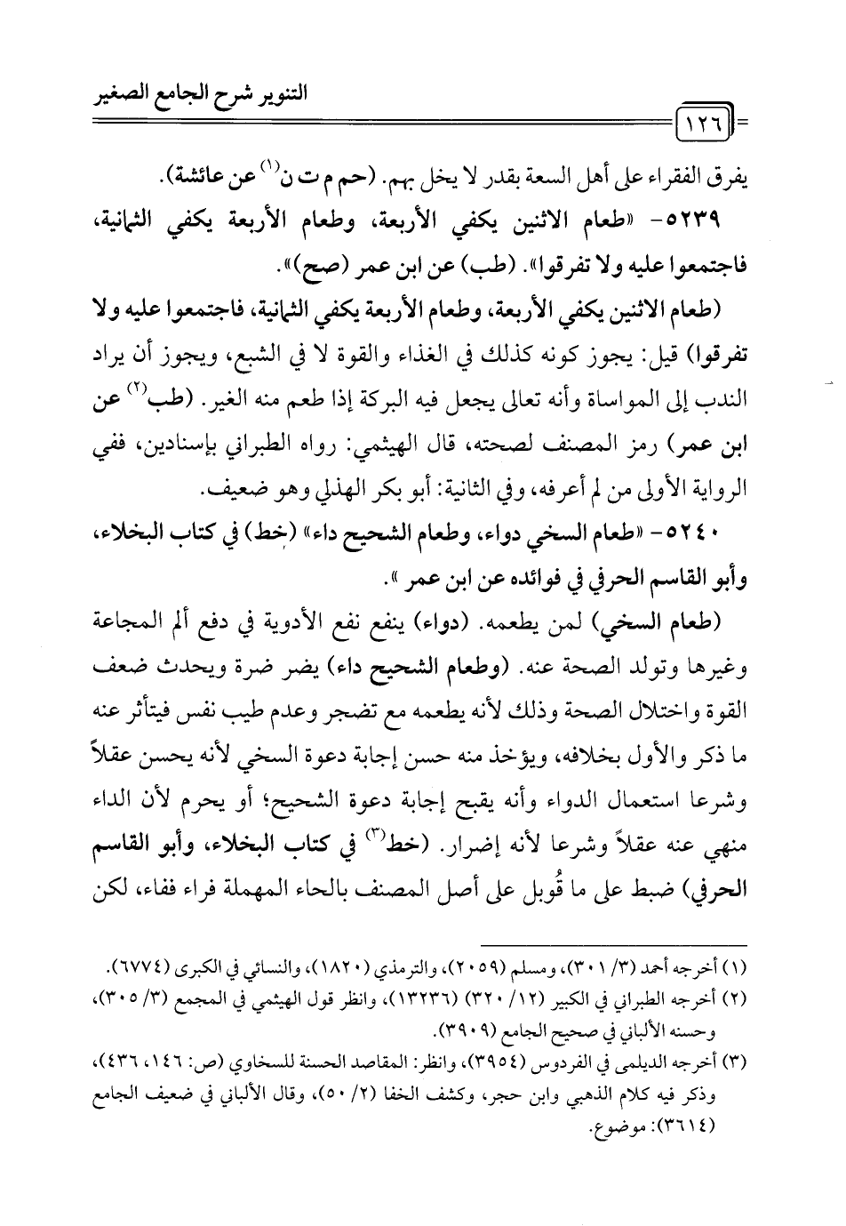 5240 - "طعام السخي دواء، وطعام الشحيح داء" (خط) في كتاب البخلاء، وأبو القاسم الحرفي في فوائده عن ابن عمر".