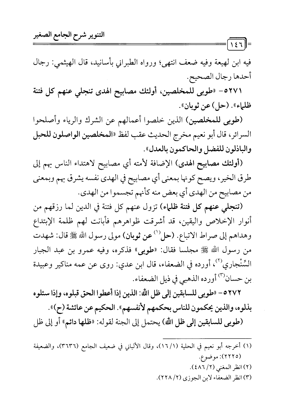 5271 - "طوبى للمخلصين، أولئك مصابيح الهدى تنجلي عنهم كل فتنة ظلماء". (حل) عن ثوبان".