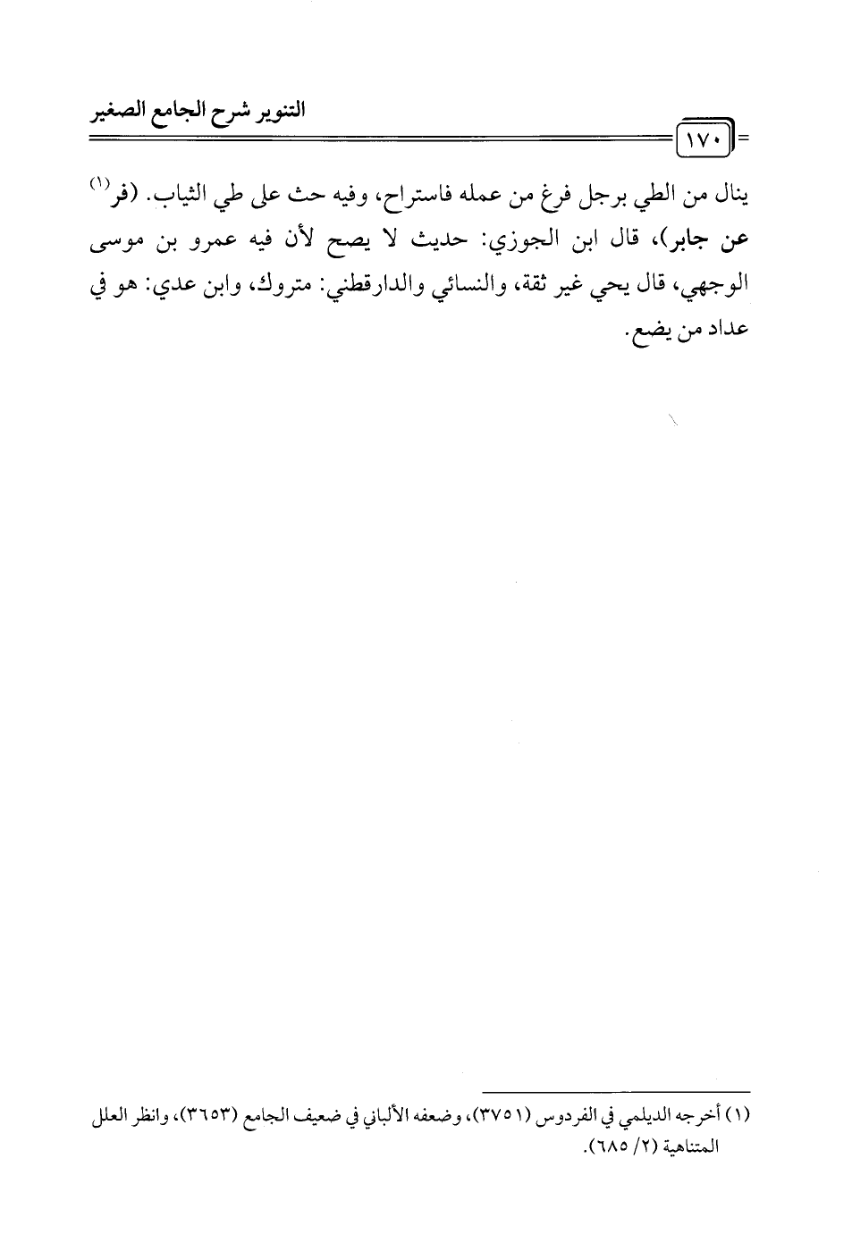(¬1) أخرجه الديلمي في الفردوس (3751)، وضعفه الألباني في ضعيف الجامع (3653)، وانظر العلل المتناهية (2/ 685).
