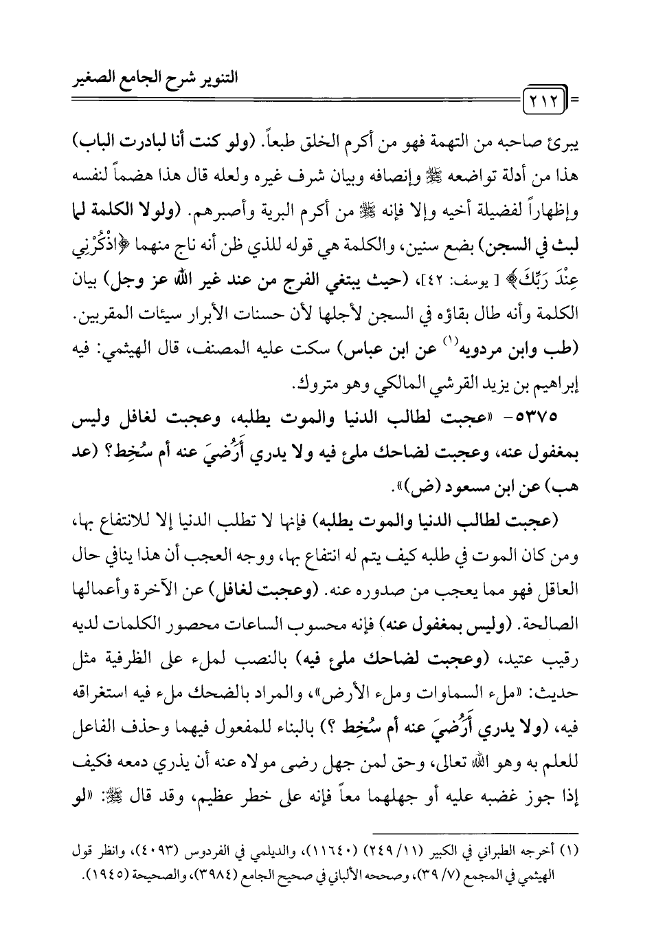 (¬1) أخرجه الطبراني في الكبير (11/ 249) (11640)، والديلمي في الفردوس (4093)، وانظر قول الهيثمي في المجمع (7/ 39)، وصححه الألباني في صحيح الجامع (3984)، والصحيحة (1945).