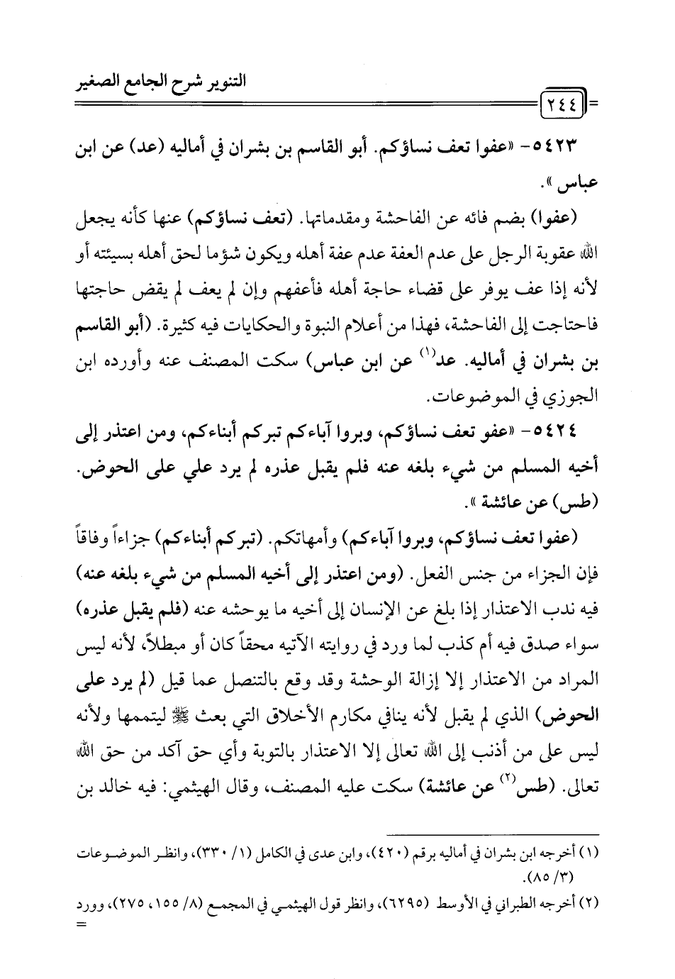 5423 - "عفوا تعف نساؤكم. أبو القاسم بن بشران في أماليه (عد) عن ابن عباس".