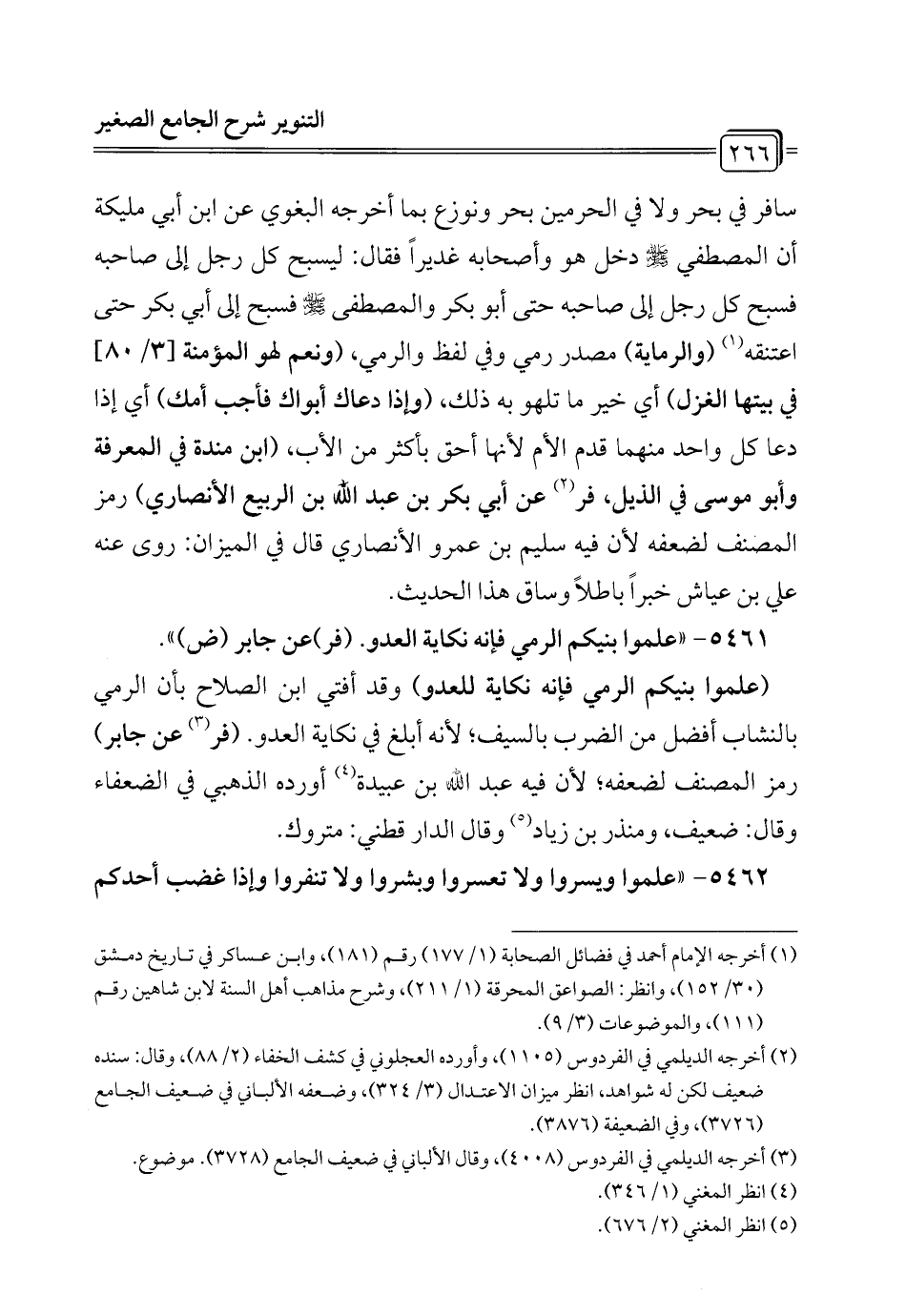 5461 - "علموا بنيكم الرمي فإنه نكاية العدو. (فر) عن جابر (ض) ".