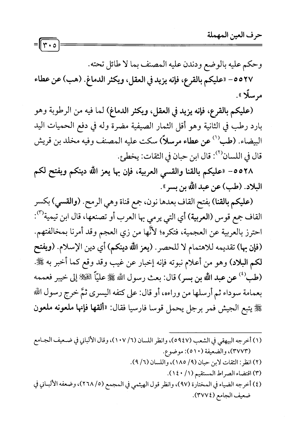 (¬2) أخرجه أبو نعيم في الطب برقم (673) وقال محققه: أخرجه ابن السني في الطب النبوي (ق 55/ 2)، والديلمي في الفردوس (4050)، وقال الأزدي: إنه باطل، وانظر لسان الميزان (3/ 369)، وضعفه الألباني في ضعيف الجامع (3777).