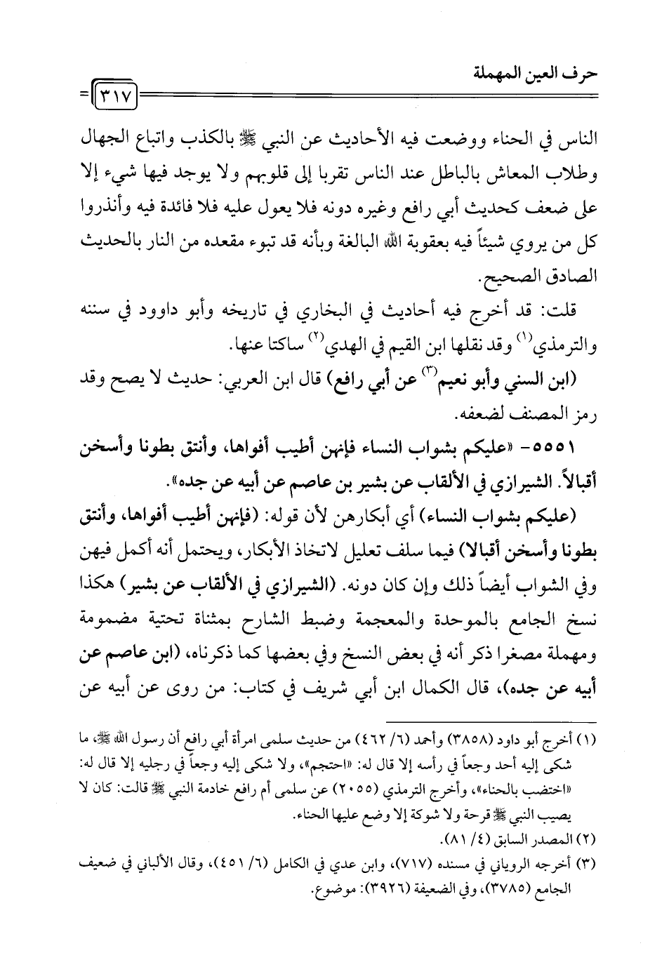 (¬1) أخرجه لابن عدي في الكامل (2/ 308) و (5/ 163)، وابن حبان في المجروحين (2/ 100) وأبو نعيم في الطب (رقم 464)، وابن السني (ق 40/ أ) وانظر فيض القدير (4/ 350)، وقال الألباني في ضعيف الجامع (3787) والضعيفة (798): موضوع.