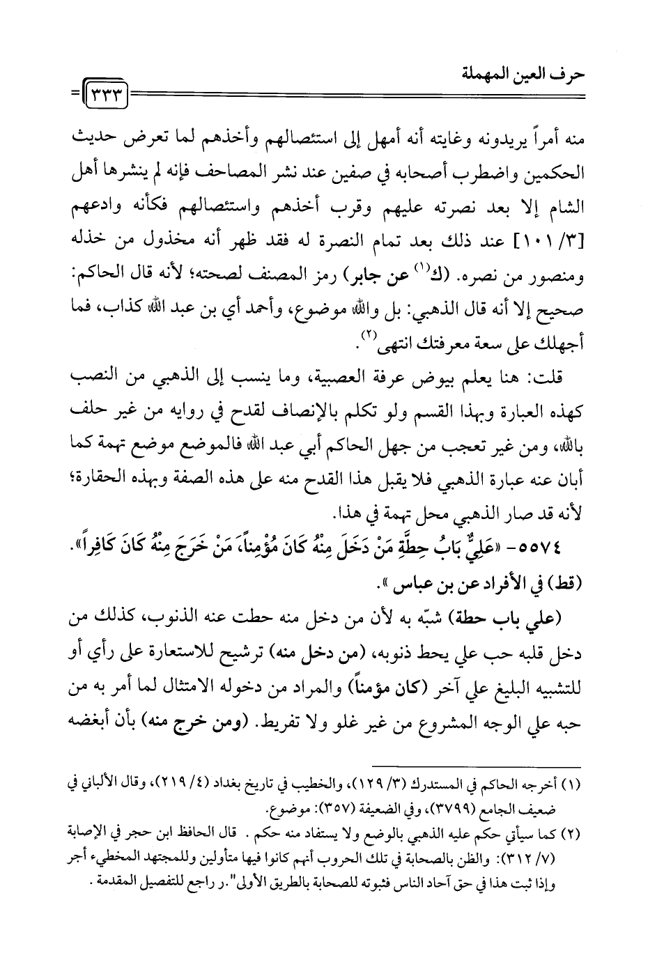 (¬3) أخرجه الطبراني في الأوسط (4880)، والحاكم (3/ 134)، وقال العلائي في إجمال الإصابة في أقوال الصحابة (ص: 55) وأخرج الحاكم بسند حسن .. ثم ذكره, وانظر قول الهيثمي في المجمع (9/ 183)، وضعفه الألباني في ضعيف الجامع (3802).