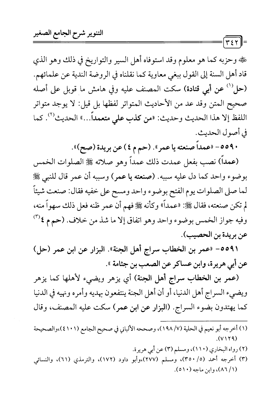 5595 - "عمرة في رمضان تعدل حجة". (حم خ هـ) عن جابر (حم ق د هـ) عن ابن عباس (د ت هـ) عن أم معقل (هـ) عن وهب بن خنيس (طب) عن ابن الزبير (صح) ".