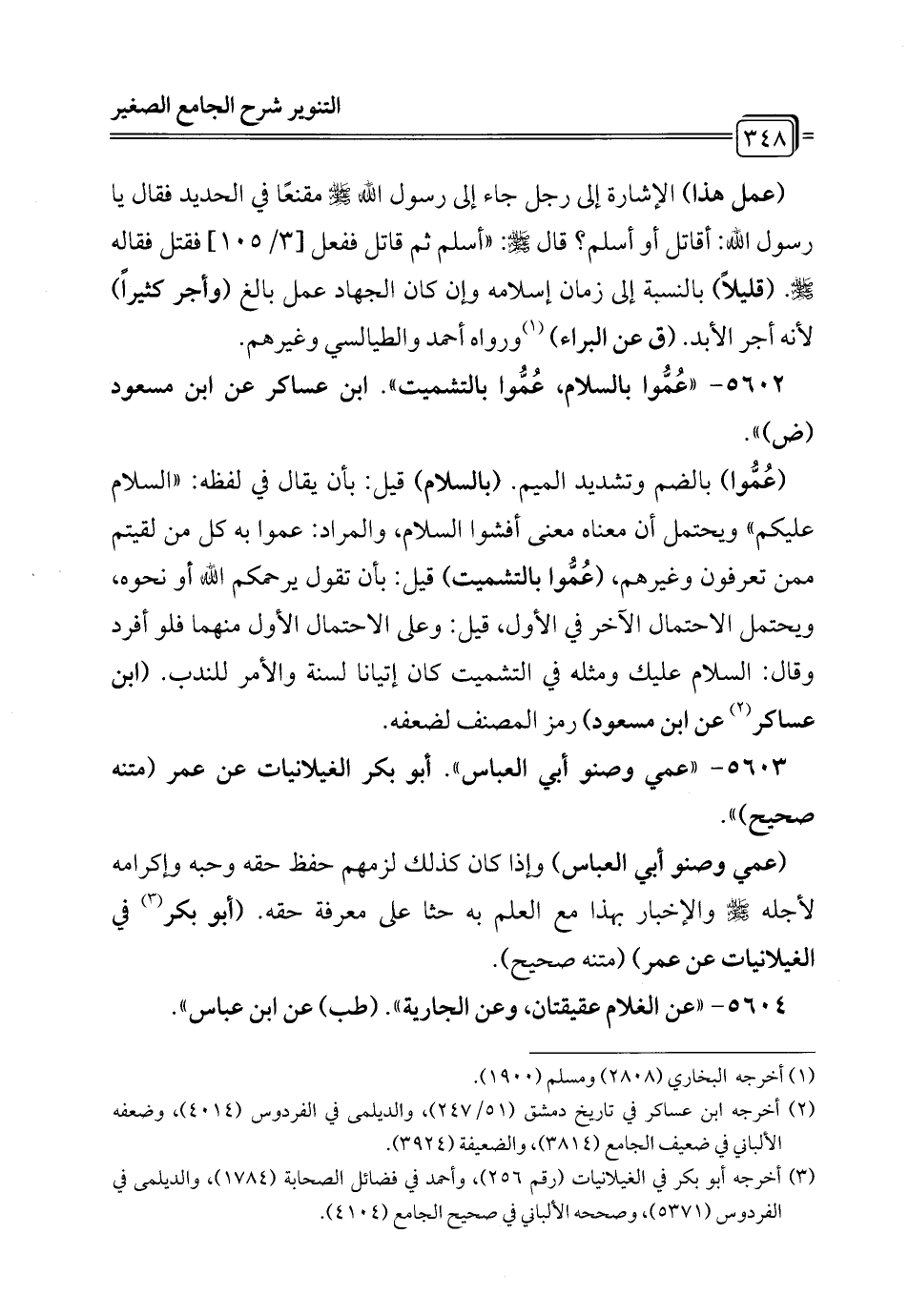 5606 - "عن الغلام شاتان، وعن الجارية شاة: لا يضركم أذكرانا كن أم إناثاً". (حم د ت ن ك حب) عن أم كرز (ت) عن سلمان بن عامر، وعن عائشة (صح) ".