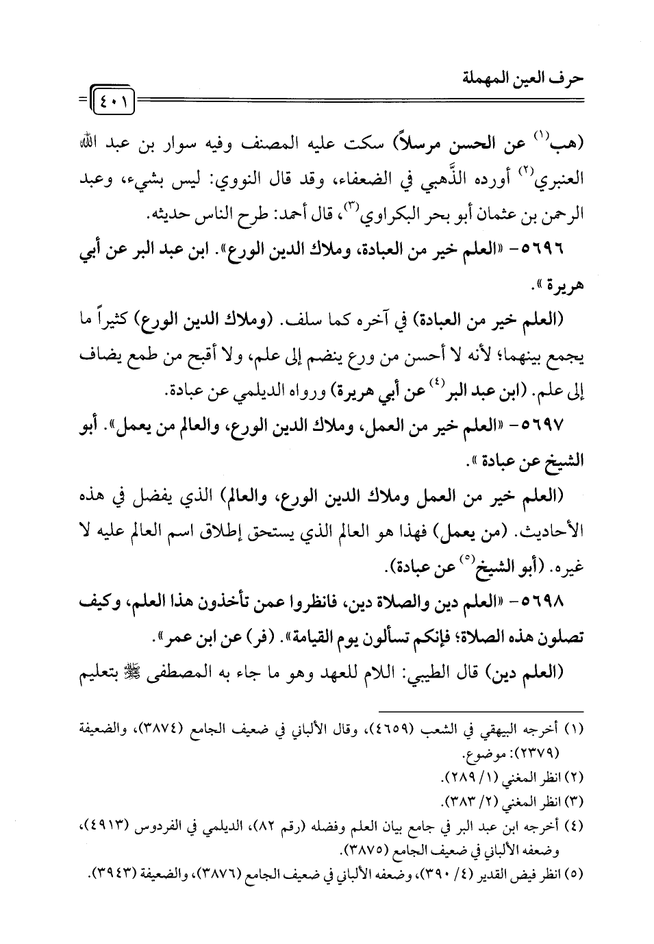(¬3) أخرجه أبو نعيم في مسند أبي حنيفة (1/ 57)، وقال الألباني في ضعيف الجامع (3880)؛ =