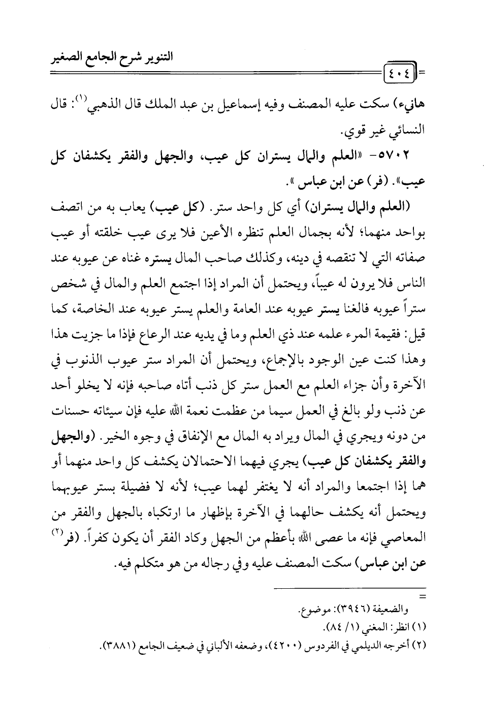 (¬1) أخرجه القضاعي في الشهاب (68)، والديلمي في الفردوس (4246)، وانظر كشف الخفا (2/ 94)، وضعفه الألباني في ضعيف الجامع (3892).