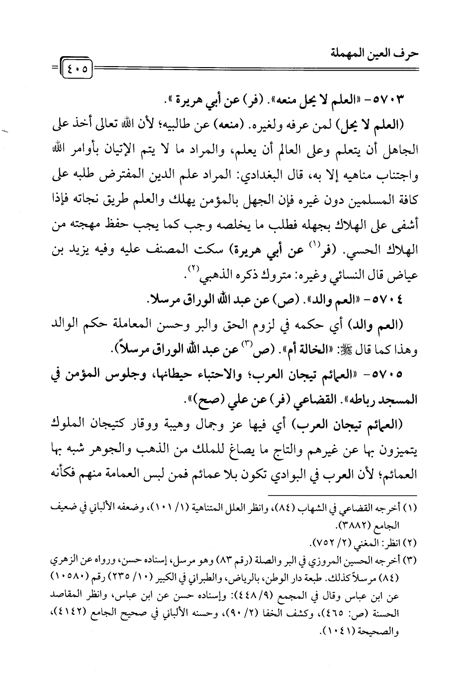 5709 - "العمرى جائزة لأهلها". (حم ق ن) عن جابر (حم ق د ن) عن أبي هريرة (حم د ت) عن سمرة (ن) عن زيد بن ثابت، وعن ابن عباس (صح) ".
