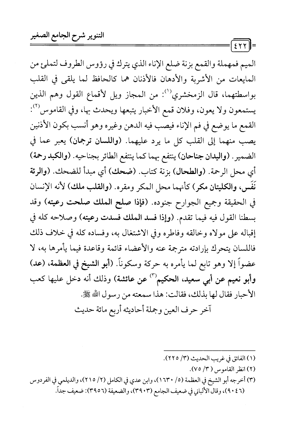 (¬1) أخرجه ابن السني في الطب (ق 26/ أ)، وأبو نعيم في الطب (رقم 295)، وانظر فيض القدير (4/ 400)، وضعفه الألباني في ضعيف الجامع (3905).