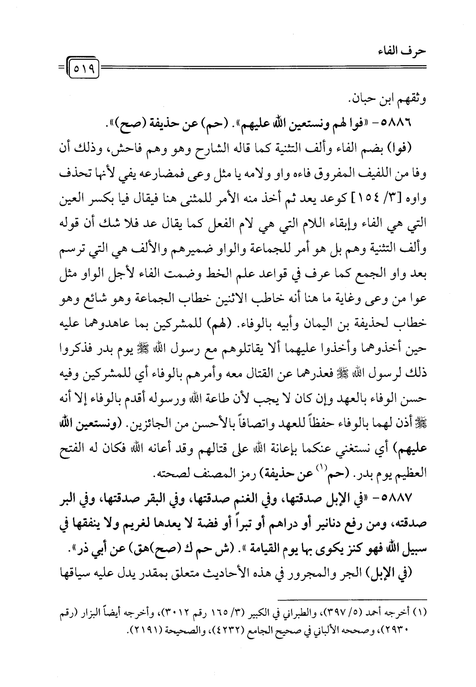 5886 - "فوا لهم ونستعين الله عليهم". (حم) عن حذيفة (صح) ".