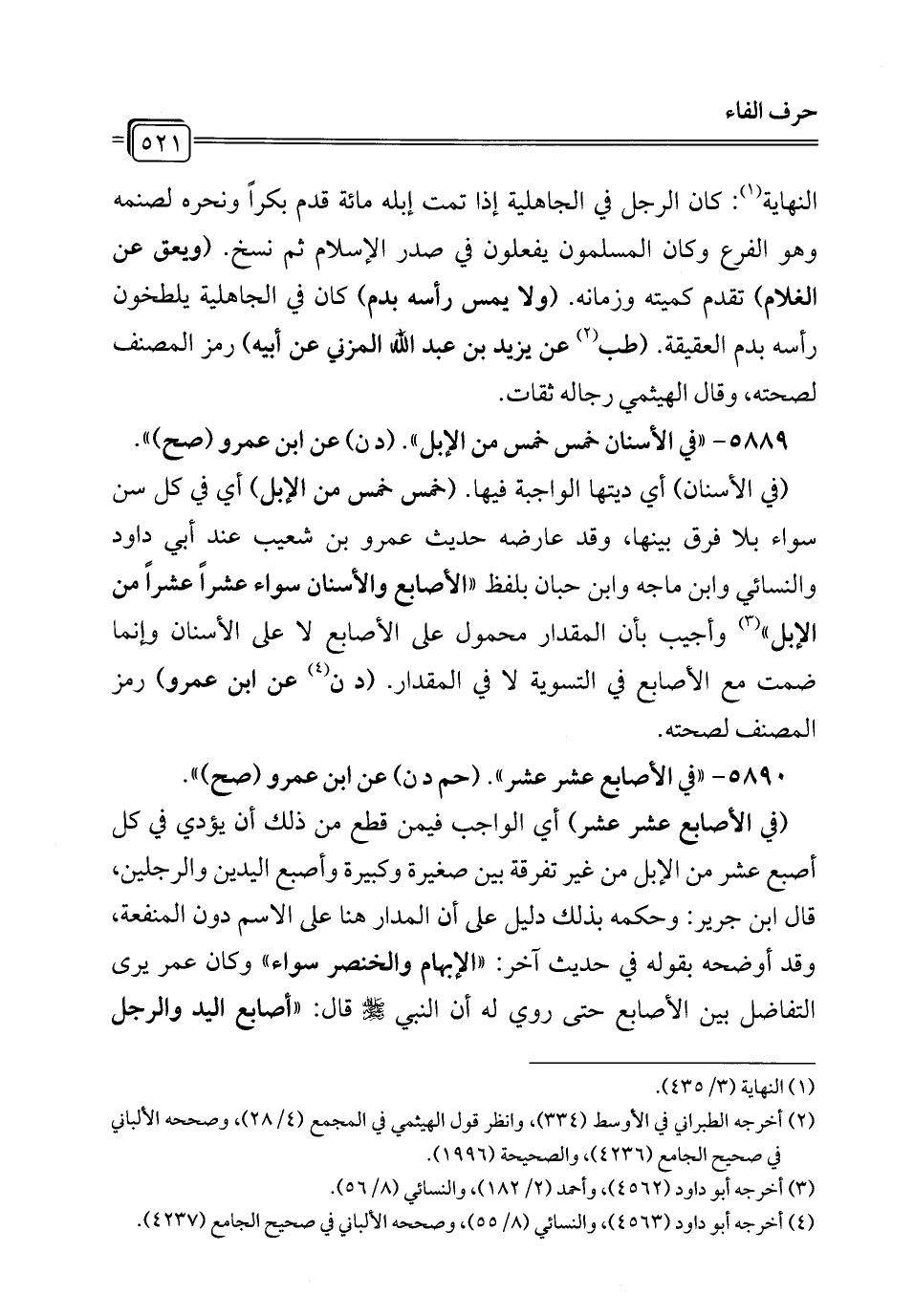 5890 - "في الأصابع عشر عشر". (حم د ن) عن ابن عمرو (صح) ".
