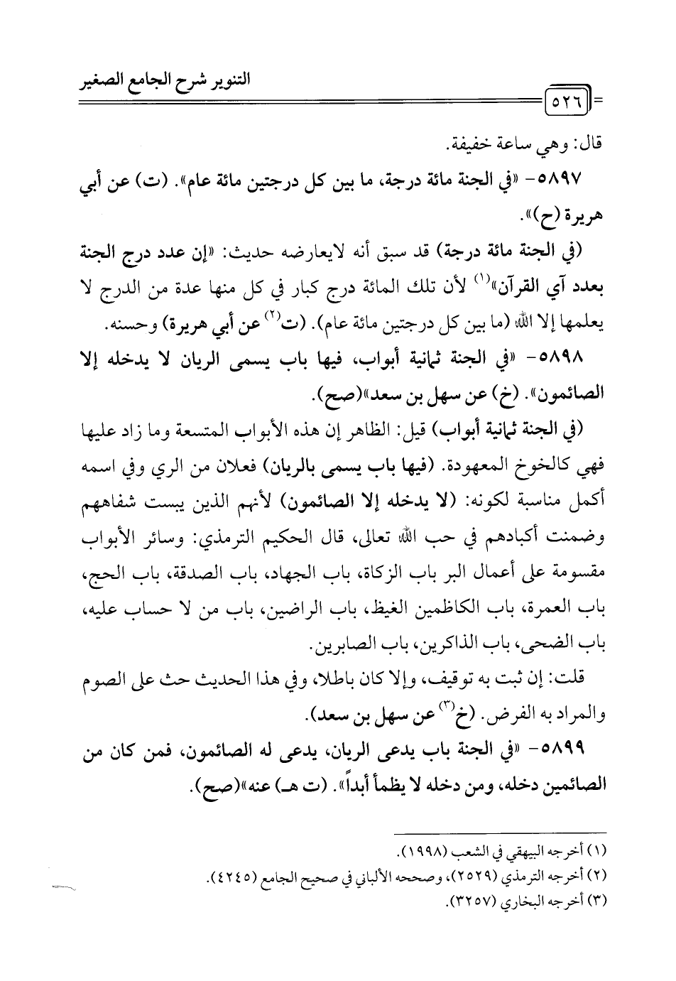 5898 - "في الجنة ثمانية أبواب، فيها باب يسمى الريان لا يدخله إلا الصائمون". (خ) عن سهل بن سعد) (صح).