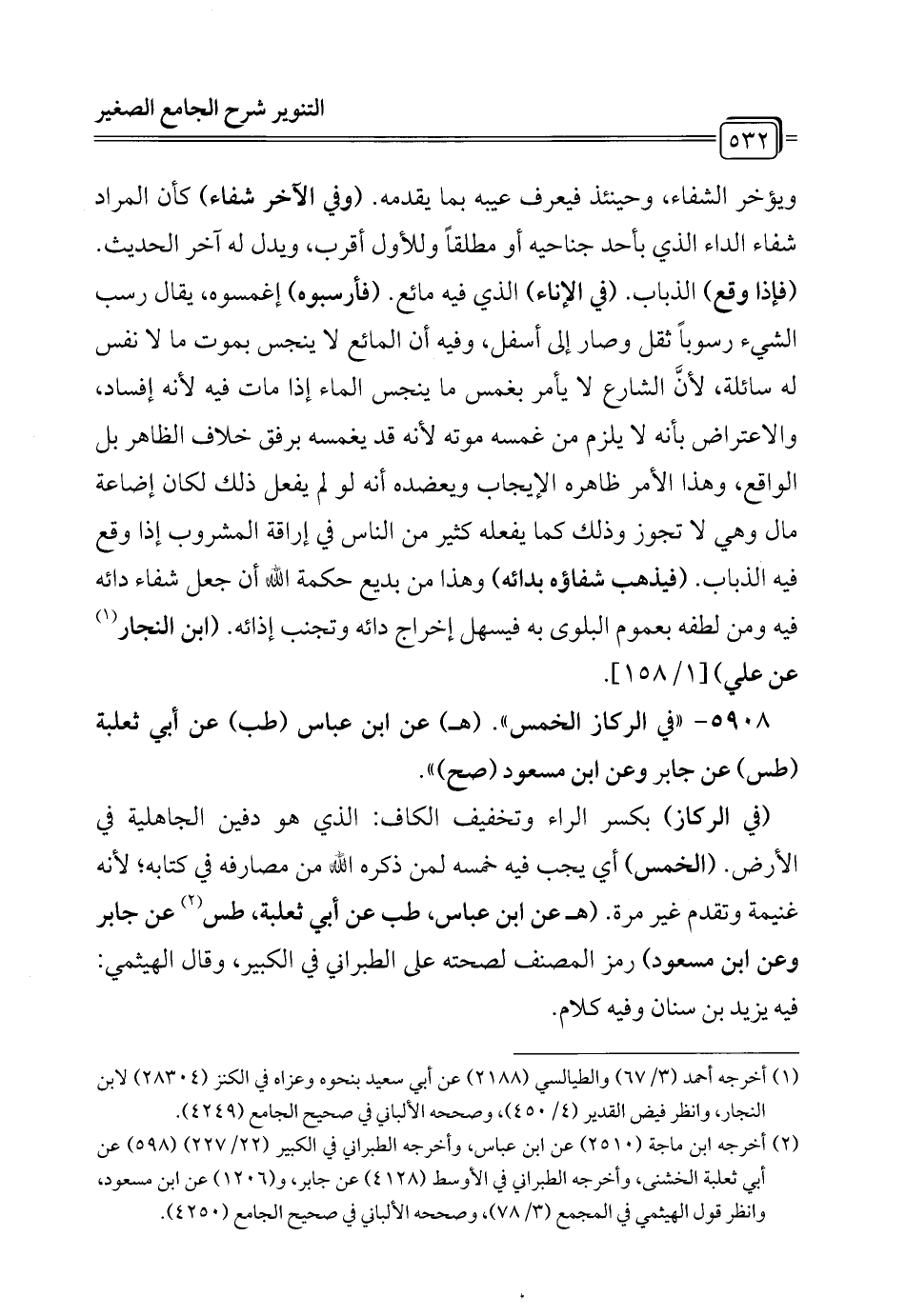 5908 - "في الركاز الخمس". (هـ) عن ابن عباس (طب) عن أبي ثعلبة (طس) عن جابر وعن ابن مسعود (صح) ".