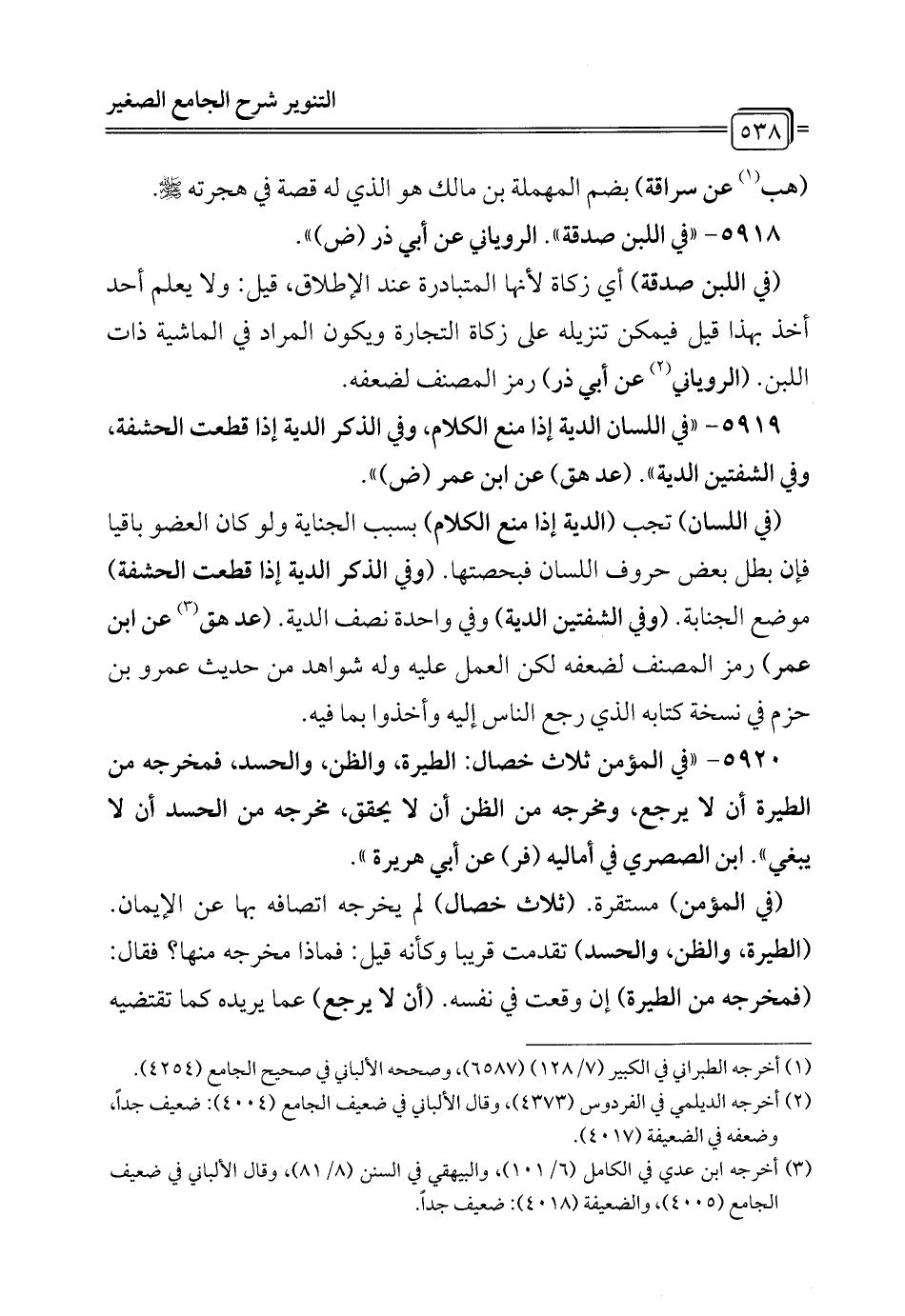 5918 - "في اللبن صدقة". الروياني عن أبي ذر (ض) ".
