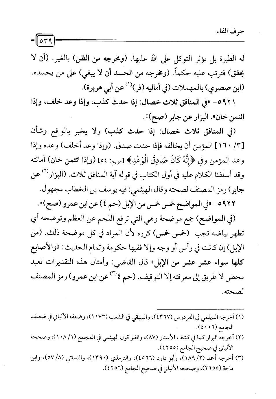 5922 - "في المواضع خمس خمس من الإبل (حم 4) عن ابن عمرو (صح) ".