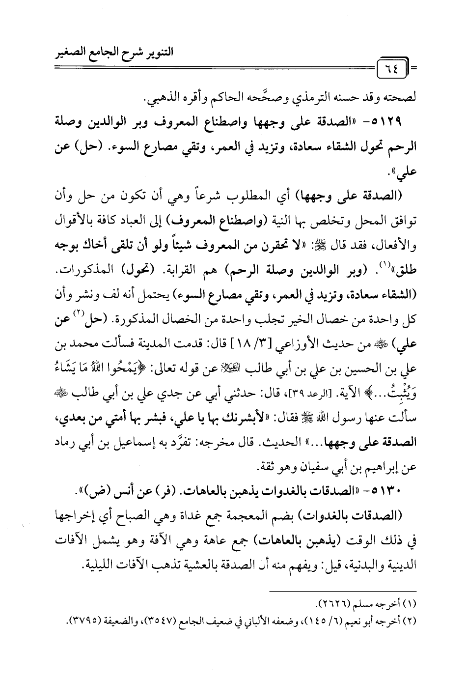 5130 - "الصدقات بالغدوات يذهبن بالعاهات. (فر) عن أنس (ض) ".