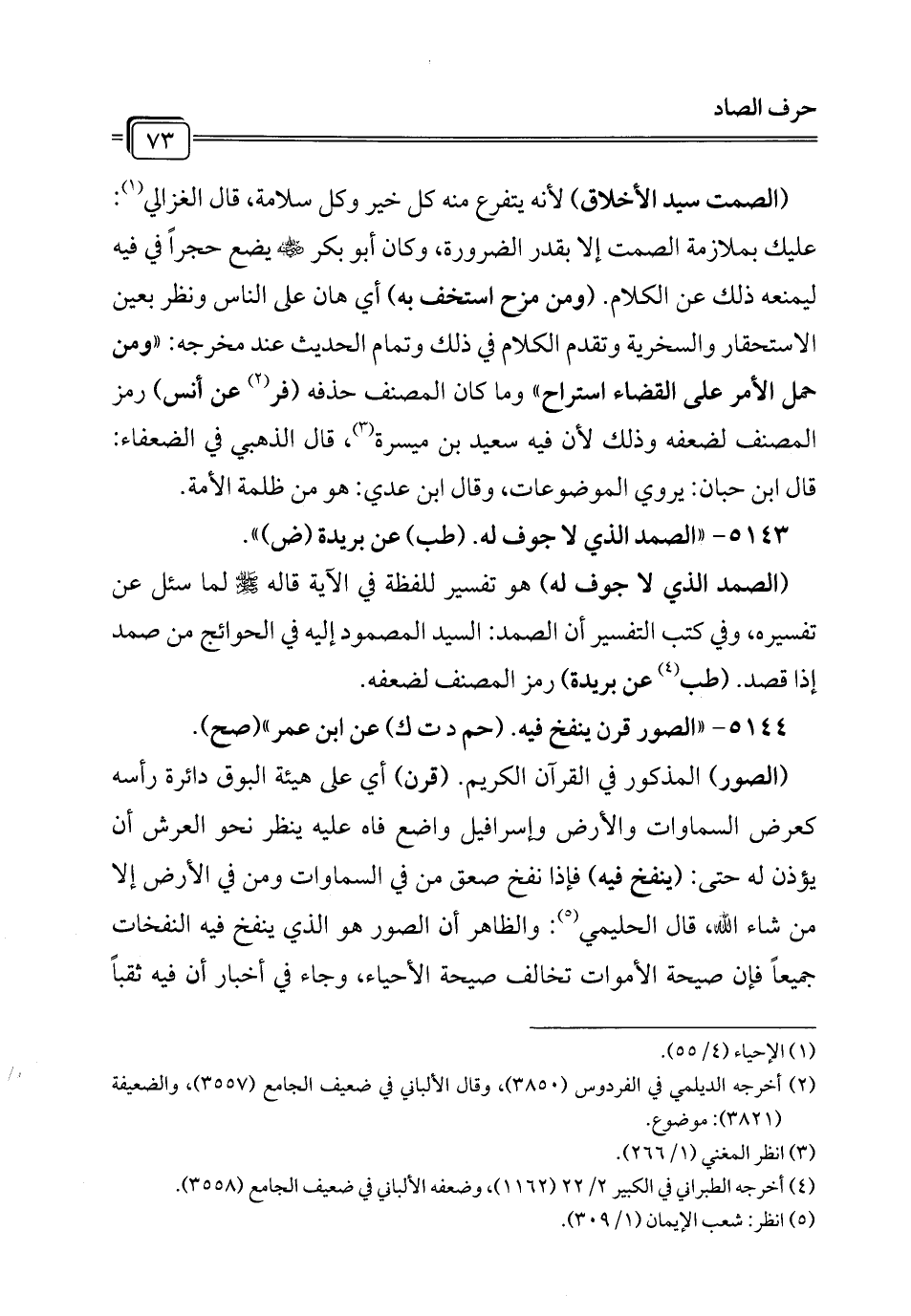 5144 - "الصور قرن ينفخ فيه. (حم د ت ك) عن ابن عمر" (صح).