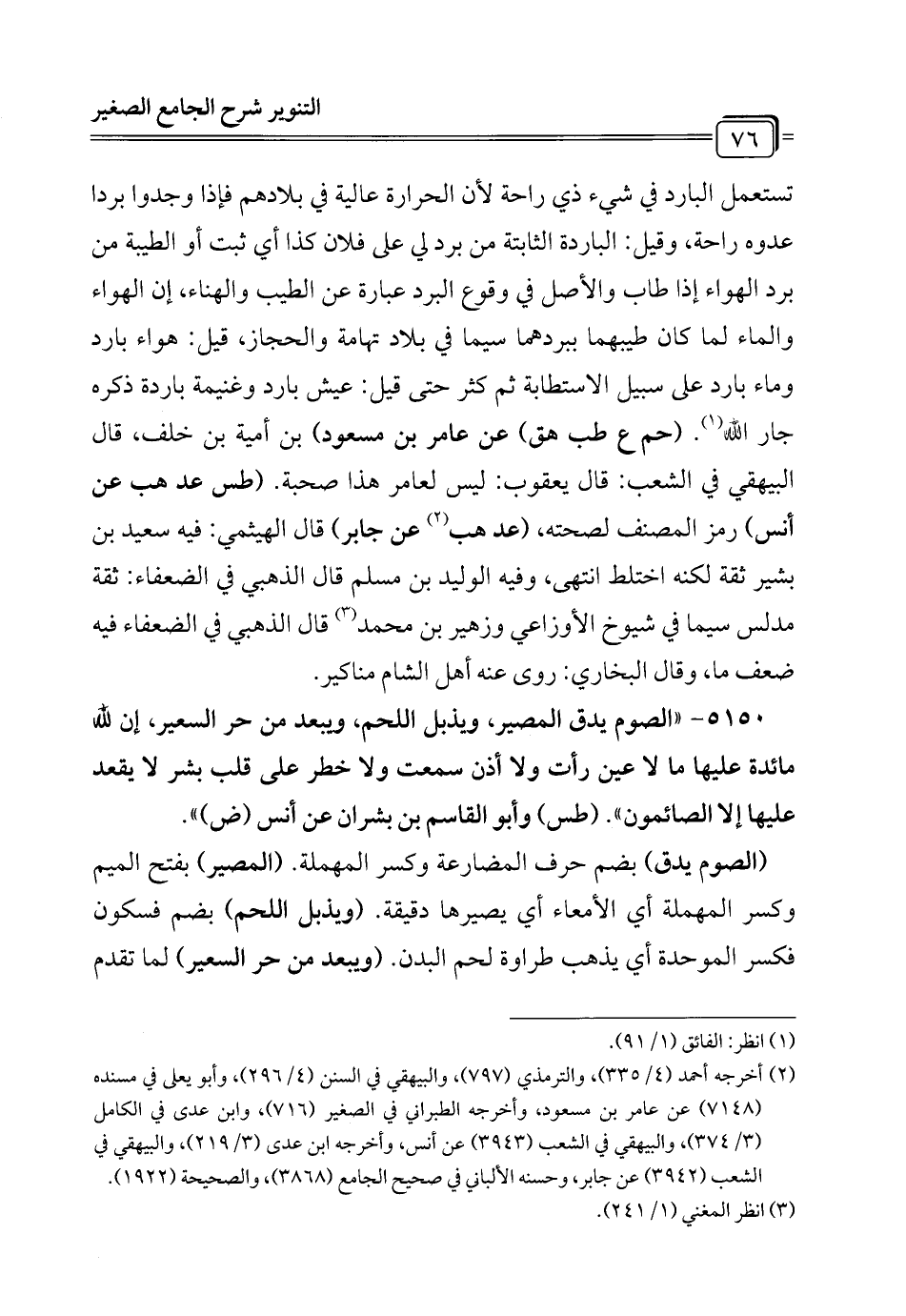 5150 - "الصوم يدق المصير، ويذبل اللحم، ويبعد من حر السعير، إن لله مائدة عليها ما لا عين رأت ولا أذن سمعت ولا خطر على قلب بشر لا يقعد عليها إلا الصائمون". (طس) وأبو القاسم بن بشران عن أنس (ض) ".