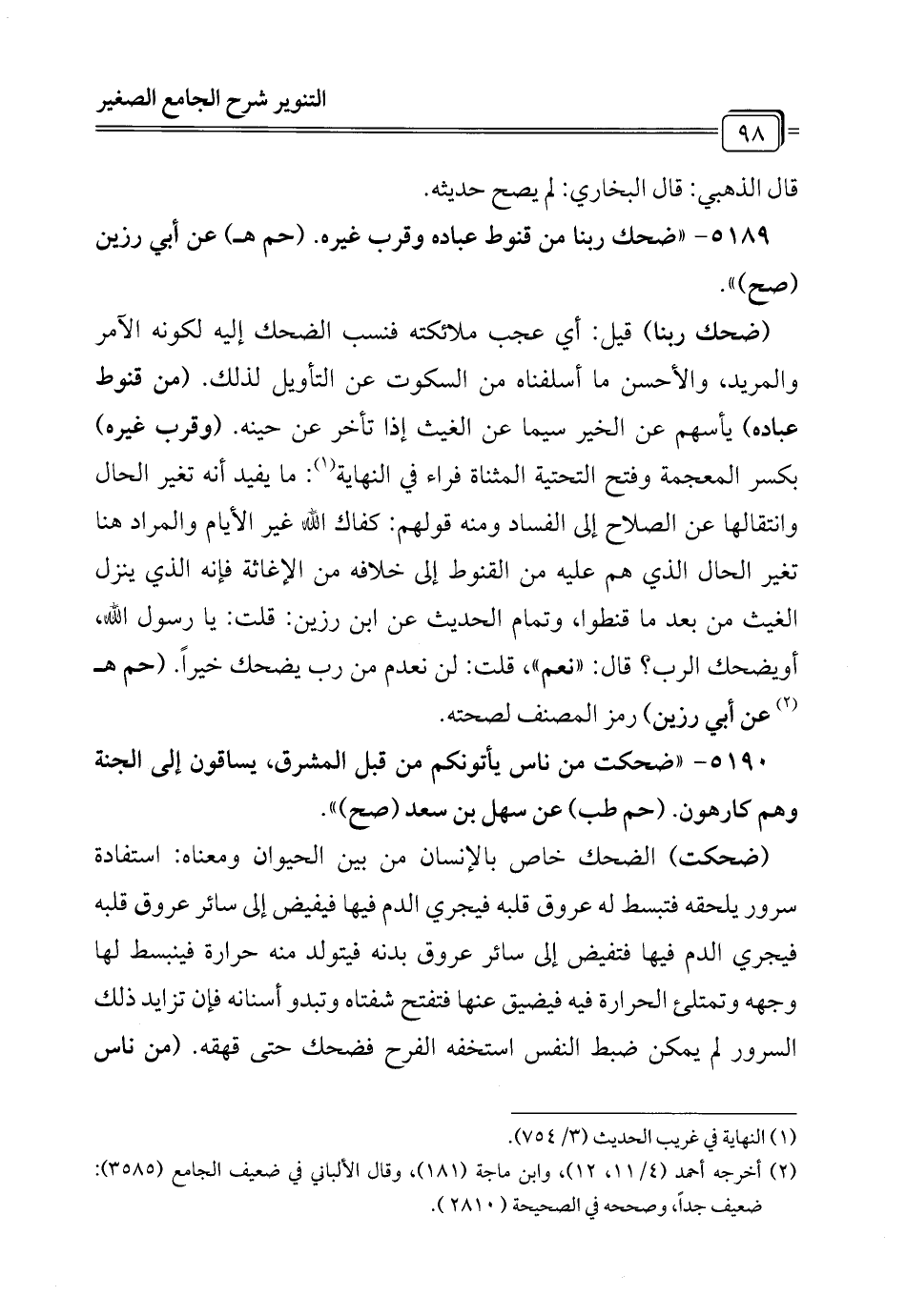 5189 - "ضحك ربنا من قنوط عباده وقرب غيره. (حم هـ) عن أبي رزين (صح) ".