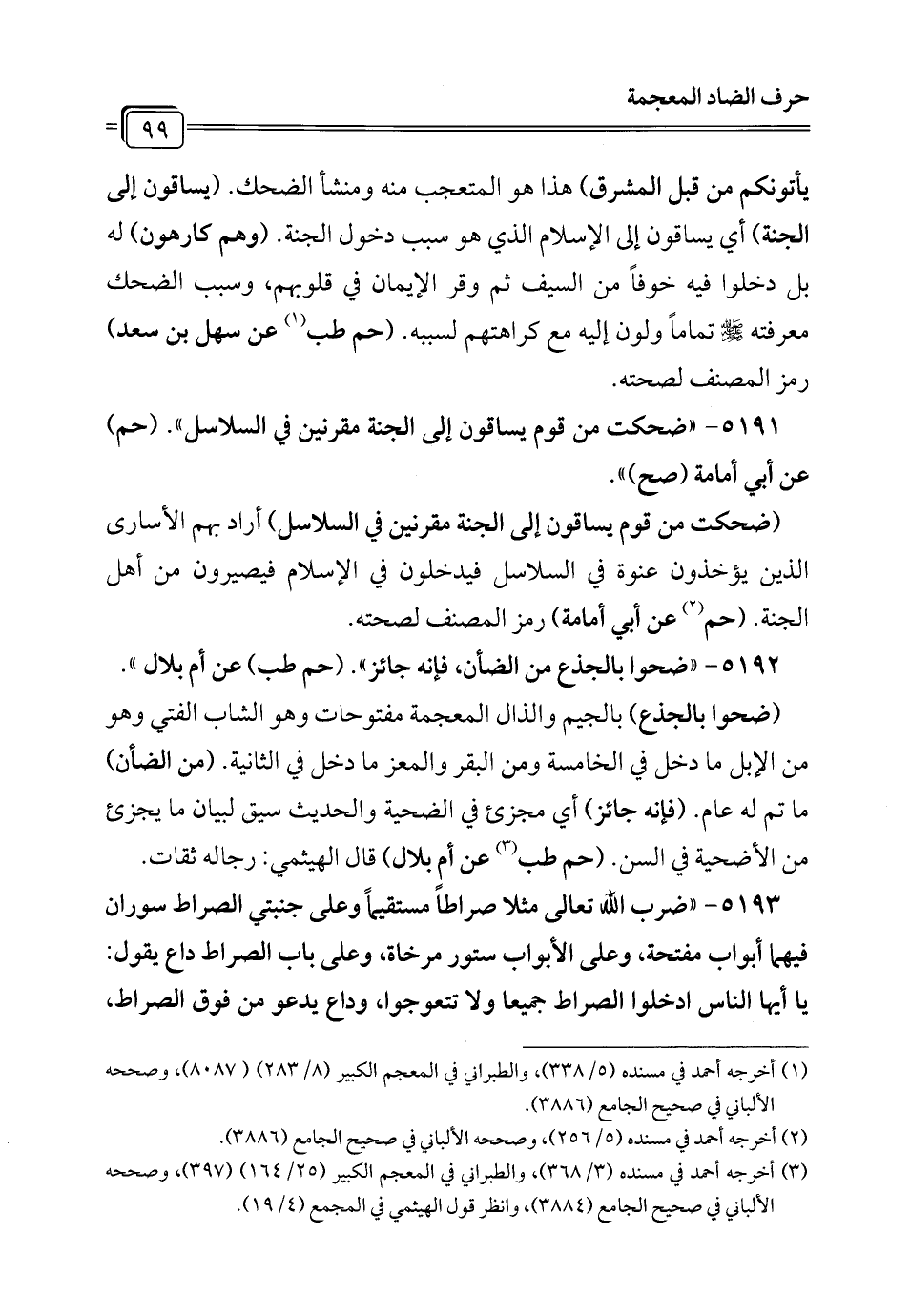 5191 - "ضحكت من قوم يساقون إلى الجنة مقرنين في السلاسل". (حم) عن أبي أمامة (صح) ".