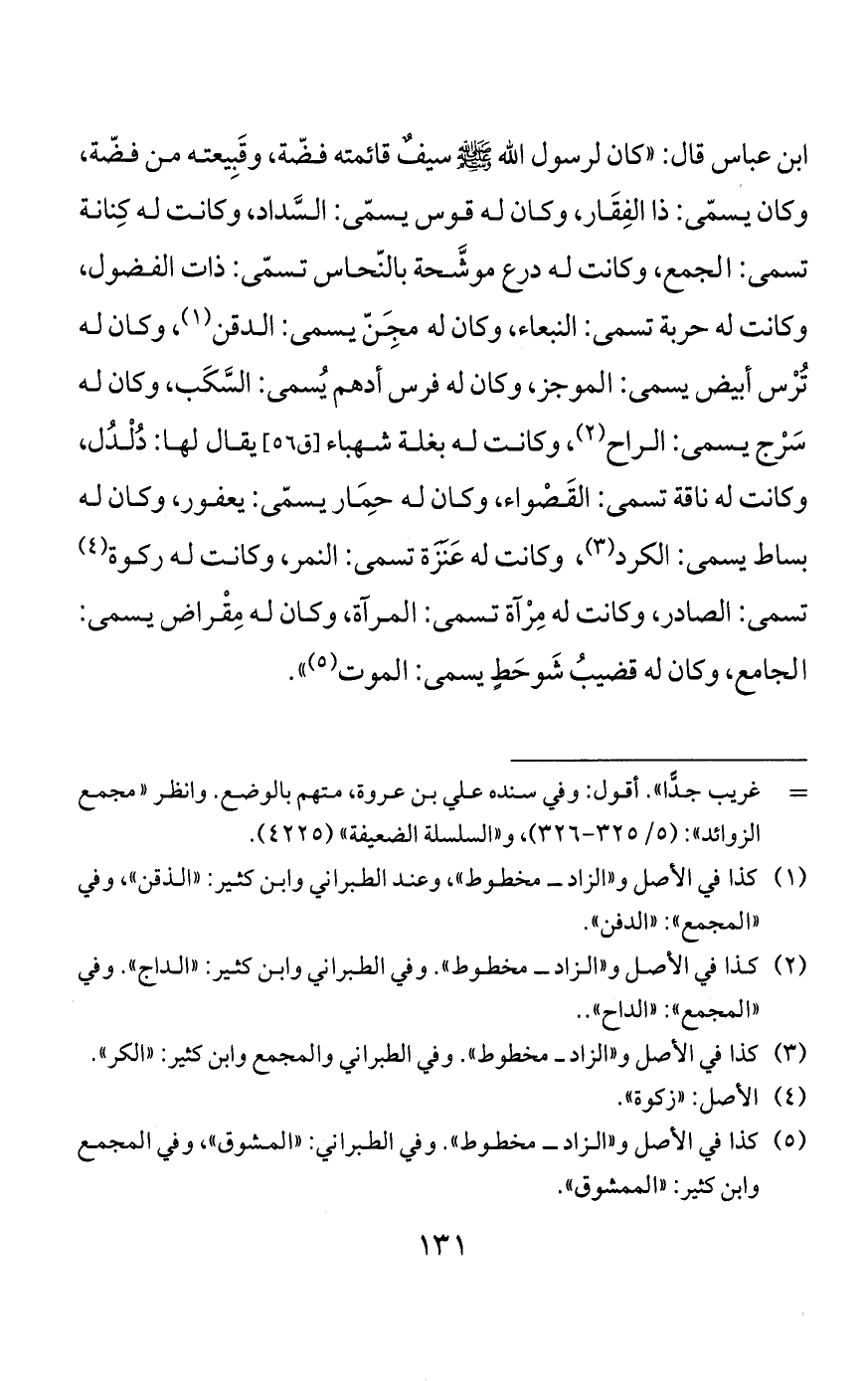 وكذلك ما يذكره بعضُ الناس من أنه كان للنبيّ صلى الله عليه وسلم سبعة أسياف= لا أصل له.