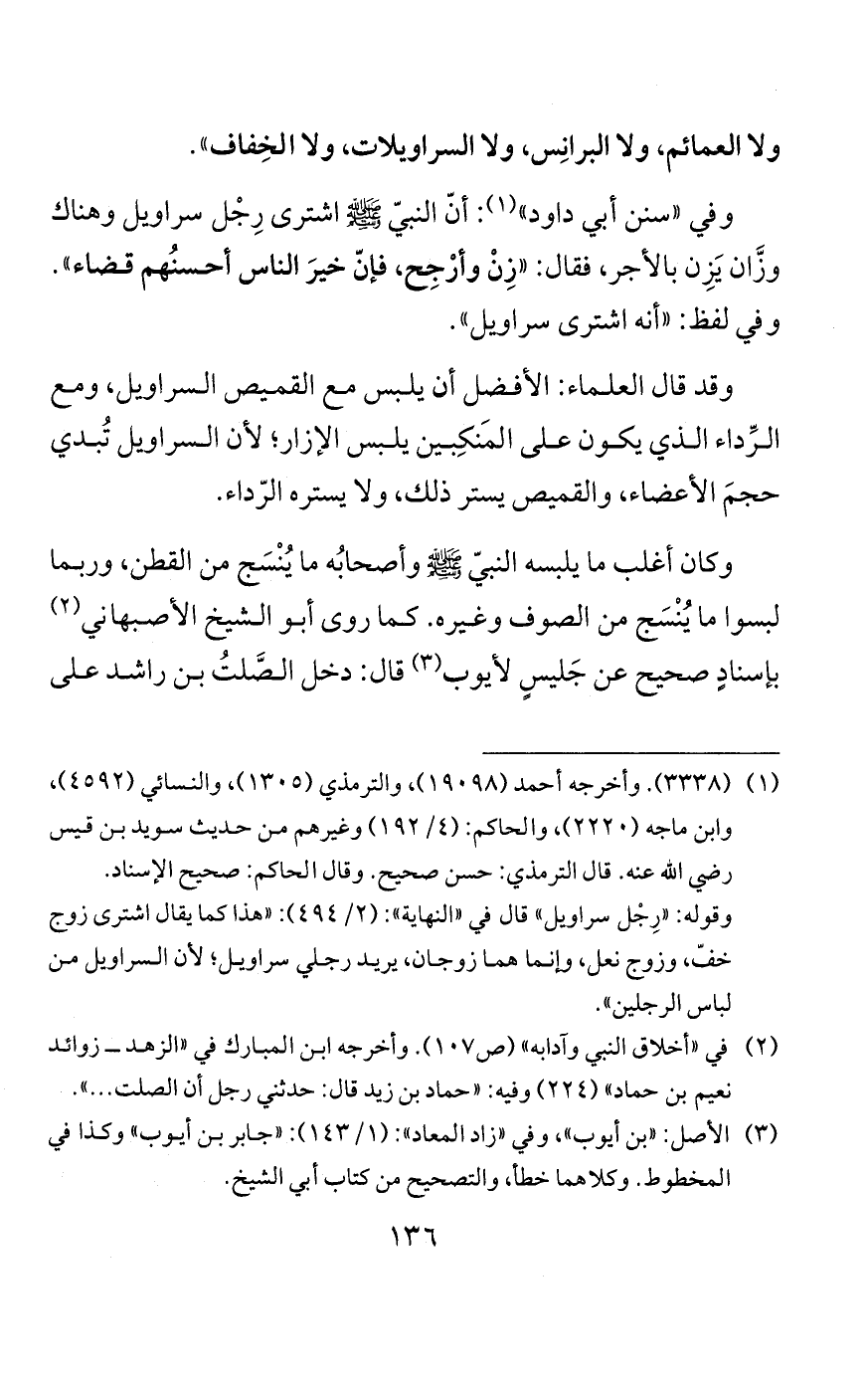 وذِكْر الإزار والرّداء له في أحاديث كثيرة مشهورة. وكذلك ذِكْر القميص.