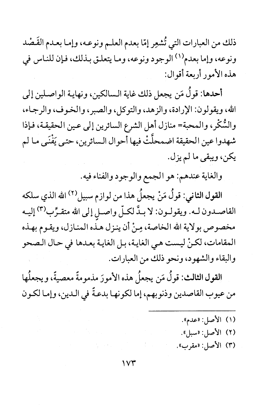 وهذا هو النوع الثالث من أنواع الفناء، وهو الفناء عن وجود السِّوَى، بحيث يجعل وجود المخلوقات عين وجود الحق، فلا يكون ثَمَّ غيرٌ يكون له وجود أصلًا. فيتكلم هؤلاء فيما يُسمُّونه مفتاح غيب الجمع والوجود.