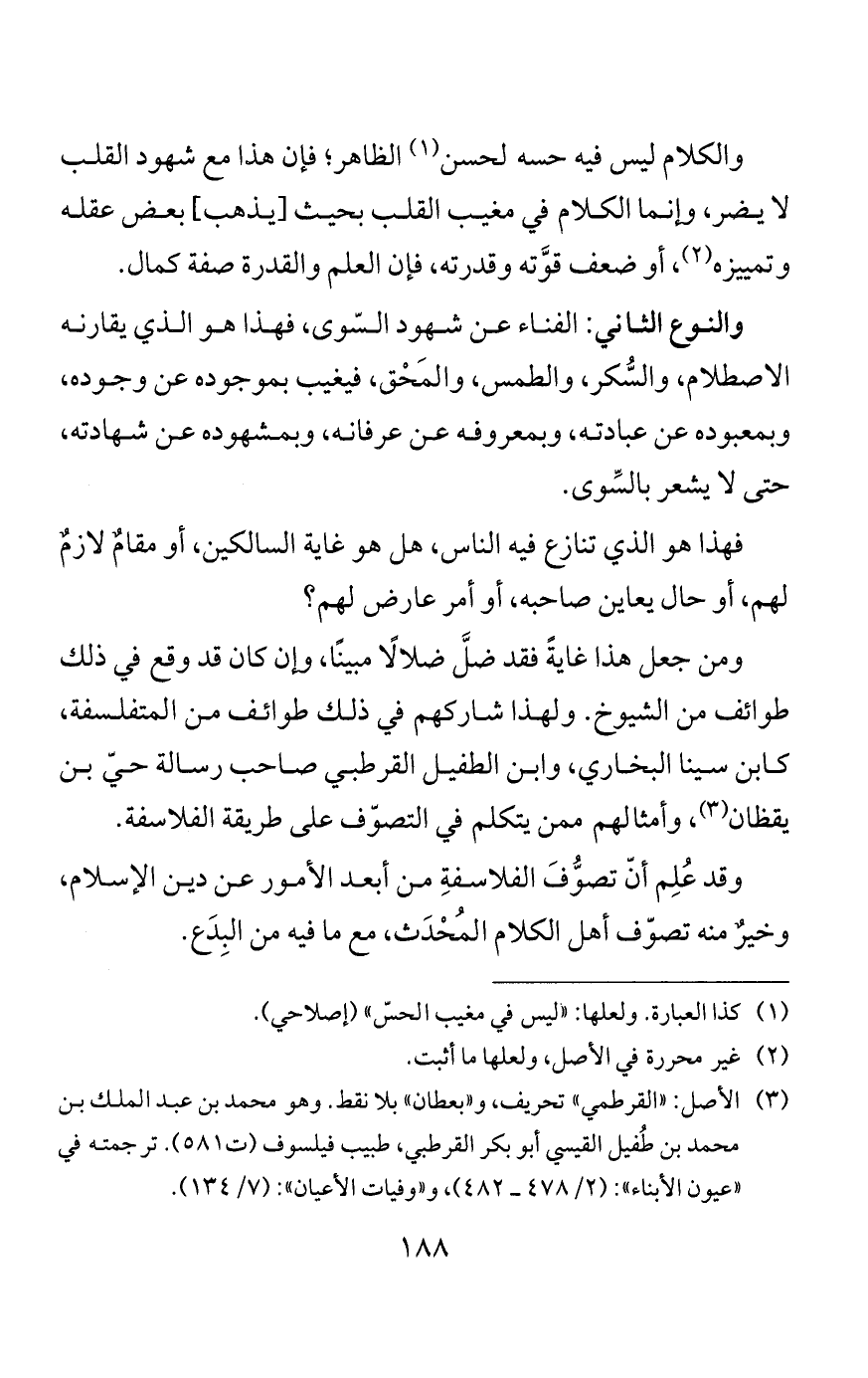وإذا كان كذلك، فمن المعلوم أن الأحوال الدينية المتضمِّنة لغيب العقل، وعزوف العلم، لم يكن في الأحوال الدينية التي كانت للصحابة، فلم يكن فيهم مَن مات عن وجدٍ أو سماع.