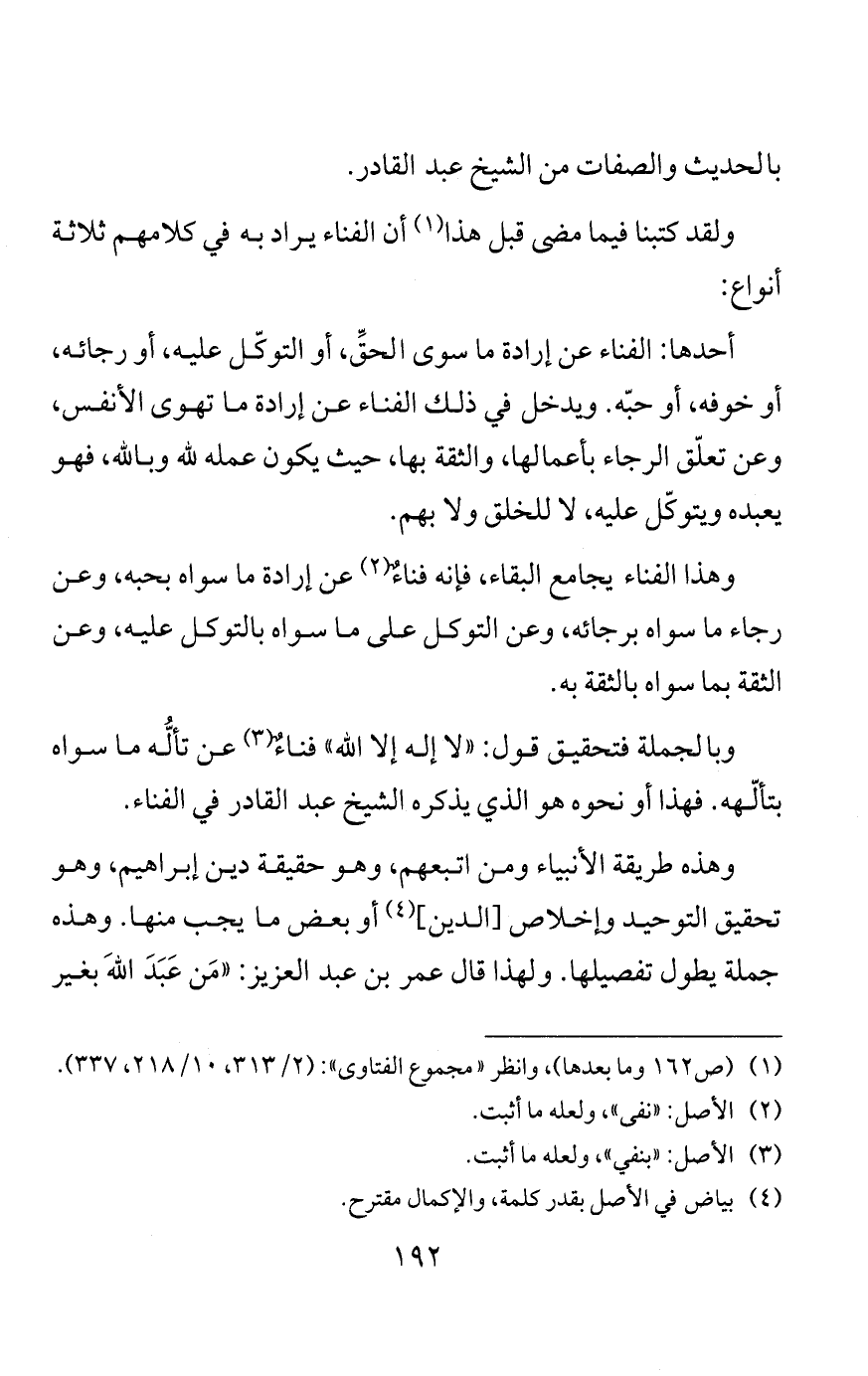 وقدماء الصوفية الأصحَّاء إذا تكلَّموا في هذا الفناء، إنما يريدون ما يُغيِّبُ العبدَ عن شهود السِّوى، لا يريدون له أنك تُسَوِّي بين المأمور والمحظور.