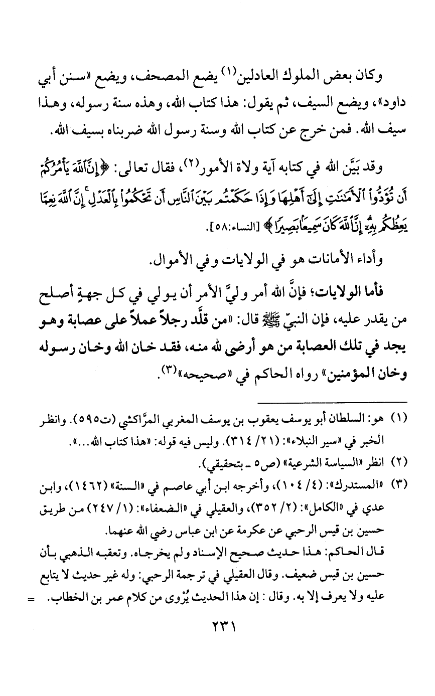 وقد روى الإمام أحمد في «مسنده» عن النبي صلى الله عليه وسلم أنه قال: «أحبّ الخلق إلى الله إمام عادل، وأبغض الخلق إلى الله إمام ظالم».