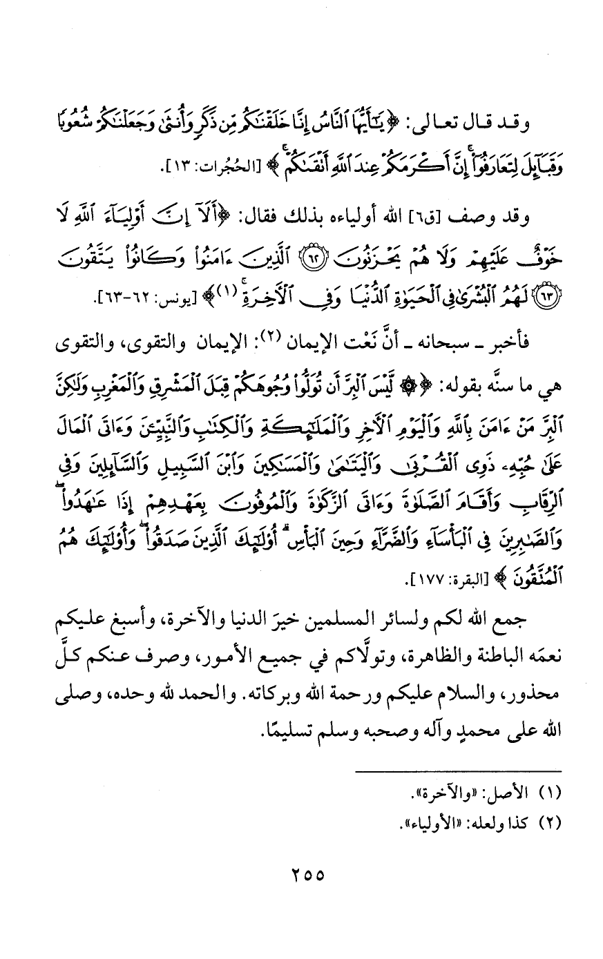 وقال تعالى: {وَالْعَصْرِ (1) إِنَّ الْإِنْسَانَ لَفِي خُسْرٍ (2) إِلَّا الَّذِينَ آمَنُوا وَعَمِلُوا الصَّالِحَاتِ وَتَوَاصَوا بِالحَقِّ وَتَوَاصَوا بِالصَّبْرِ} [العصر: 1 - 3].