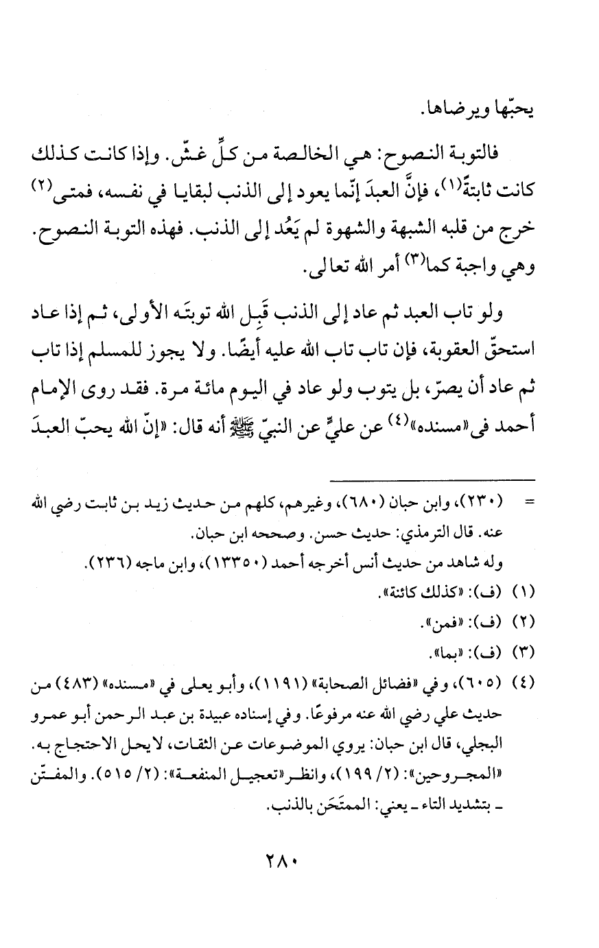 قال عمر بن الخطاب وغيره من الصحابة والتابعين: التوبة النصوح: أن يتوب العبد من الذنب ثم لا يعود إليه.