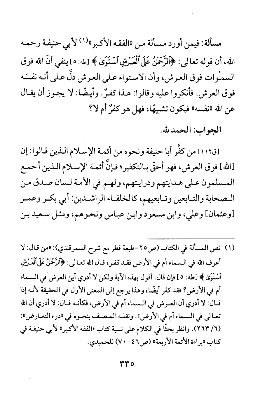 في «الفقه الأكبر» في الاستواء