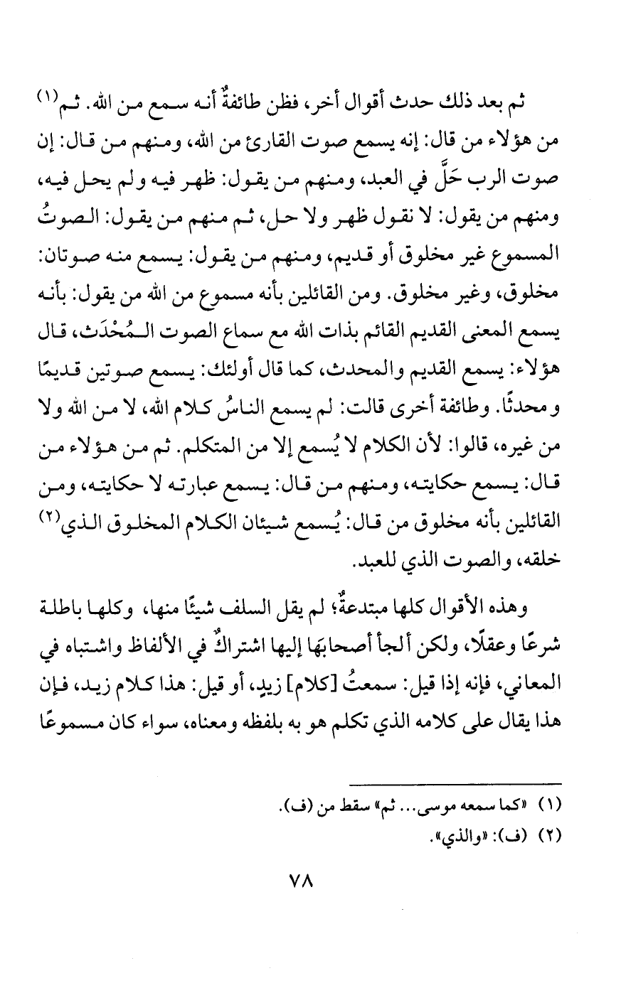 وتكلم الناس حينئذٍ في الإيمان فقالت طائفة: الإيمان مخلوق، وأدخلوا في ذلك ما تكلم الله به من الإيمان، مثل قوله: «لا إله إلا الله»، فصار مقتضى قولهم أنّ نفس هذه الكلمة مخلوقة لم يتكلم الله بها؛ فبدَّع