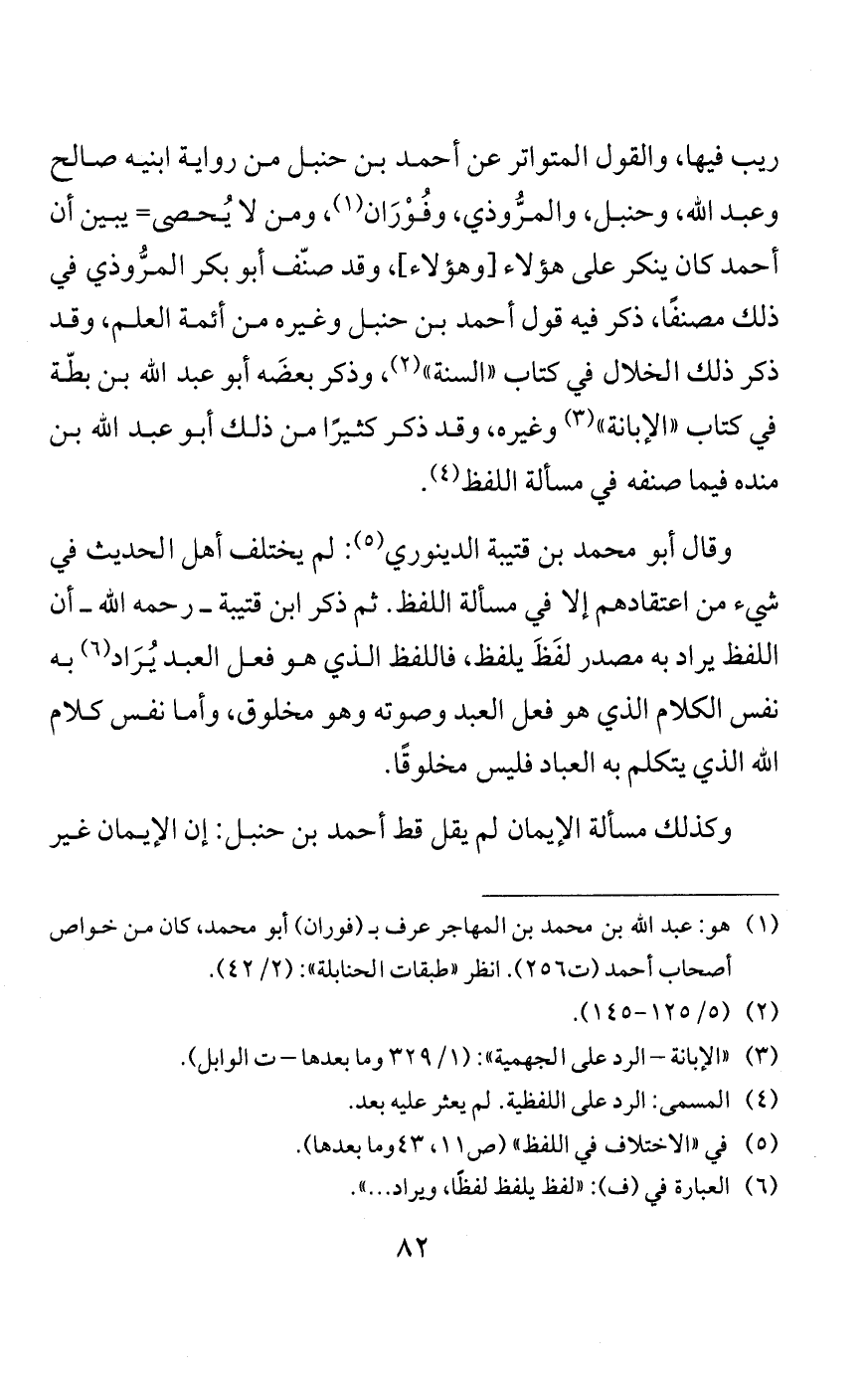 ولما صنف البخاريّ كتابه في «خلق أفعال العباد» -وذكر في آخر كتابه «الصحيح» أبوابًا في هذا المعنى- ذكر أن كلًّا من الطائفتين القائلين بأن لفظنا بالقرآن مخلوق، والقائلين بأنه غير مخلوق ينتسبون إلى الإمام أحمد بن حنبل، ويدَّعون أنهم على قوله، وكلام الطائفتين كلام مَنْ لم يفهم [دِقّة] كلام أحمد رضوان الله عليه.