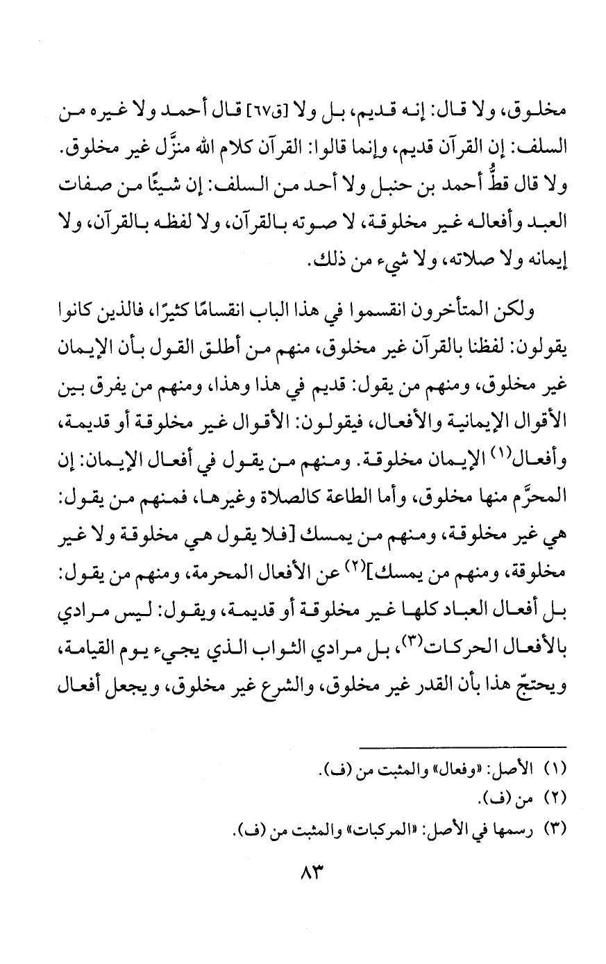 وقد رأيت طائفة تنتسب إلى السنة والحديث كأبي نصر السِّجْزي وأمثاله ممن يردّون على أبي عبد الله البخاري يقولون: إن أحمد بن حنبل كان يقول: لفظي بالقرآن غير مخلوق. وذكروا روايات كاذبة لا