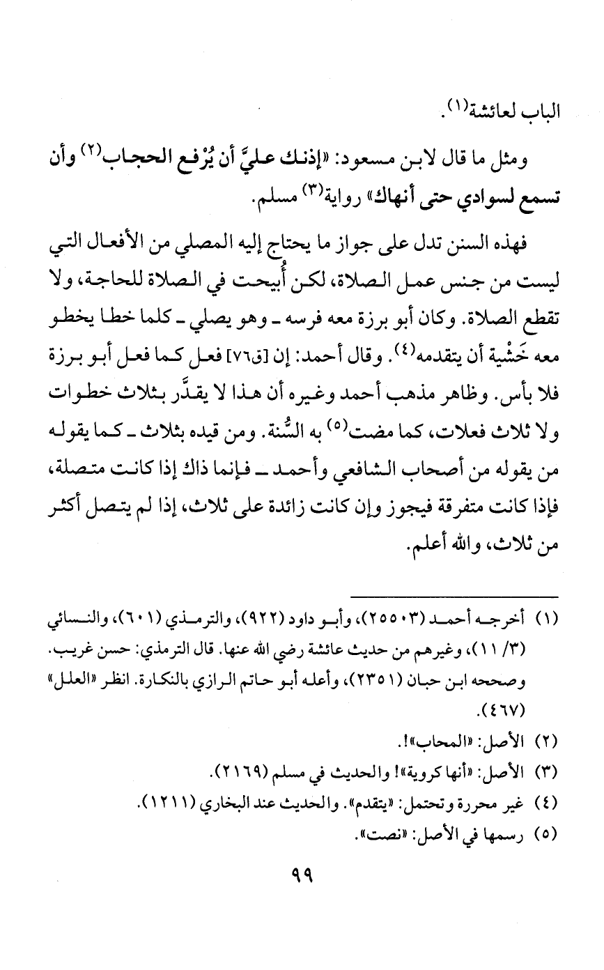 فصلى بأنسٍ مرةً والصبي اليتيم والمرأة خلفهما، فجعل المرأة وحدَها صفًّا لأجل الحاجة، إذ كانت السنة في حقِّها أن لا تقف مع الرجال، والإمام يقف وحده لأجل الإمامة؛ فمن سوَّى بين الإمام والمرأة، وبين الرجل المؤتمّ في الانفراد فقد خالف السنة، ومن جعل وقوف الفذّ لا يجوز بحال فقد خالف السنة، فعُلِم أن الاصطفاف مأمورٌ به، ونَهْيه عن وقوف الرجل وحده مأمورٌ به مع القدرة، وأما مع الحاجة فوقوف الإنسان وحده خير له من أن يدع الجماعة، ونظائر هذا كثيرة، والله أعلم.