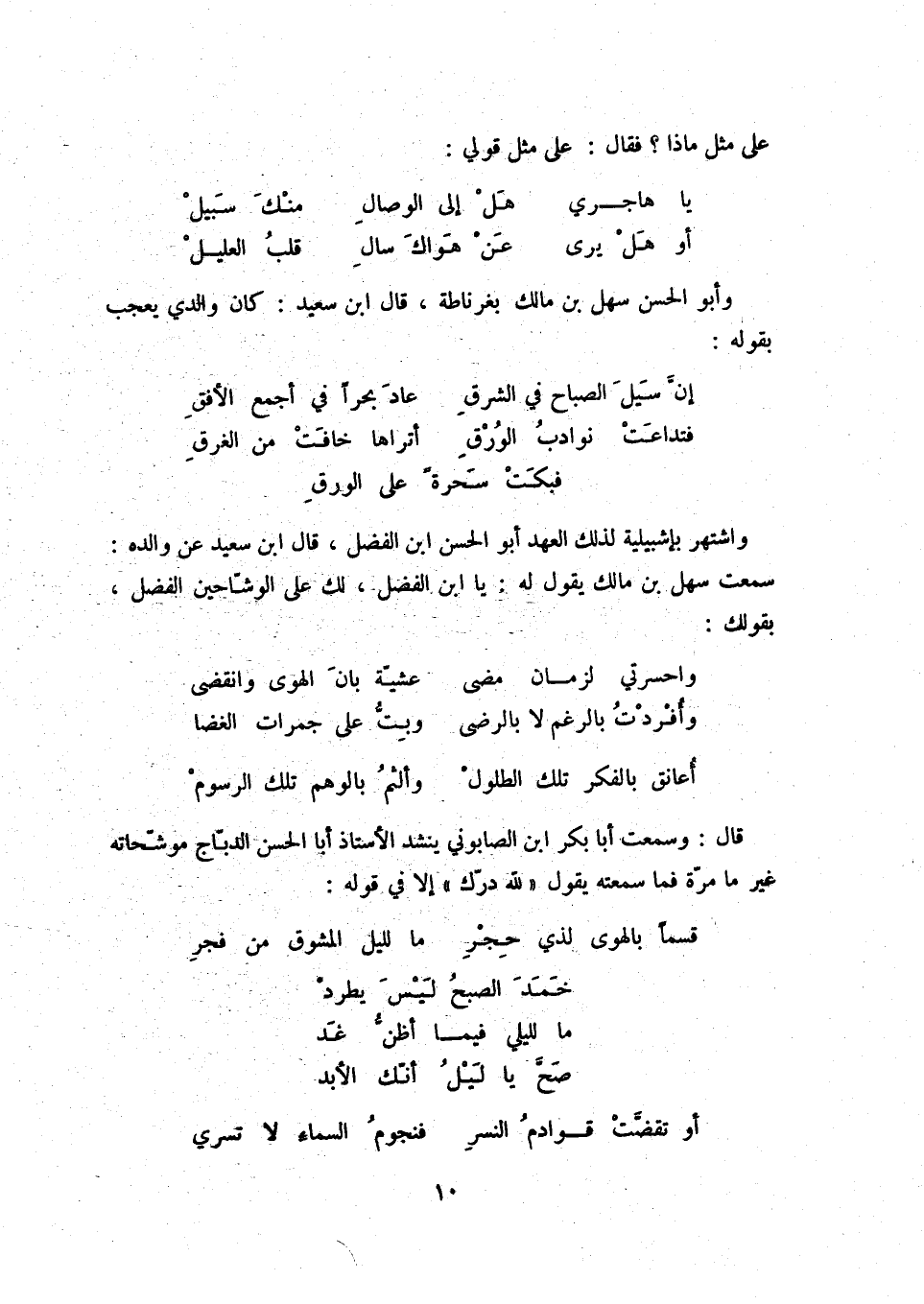 أو هل يرى ... عن هواك سال قلب العليل وأبو الحسن سهل بن مالك بغرناطة، قال ابن سعيد: كان والدي يعجب بقوله:
