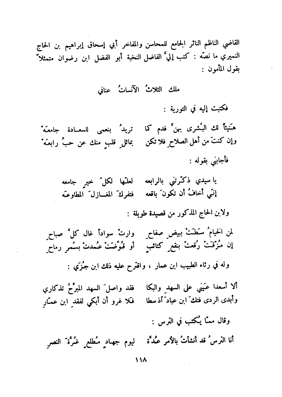 القاضي الناظم الناثر الجامع للمحاسن والمفاخر أبي إسحاق إبراهيم بن الحاج النميري ما نصّه: كتب إليّ الفاضل النخبة أبو الفضل ابن رضوان متمثلاً بقول المأمون: