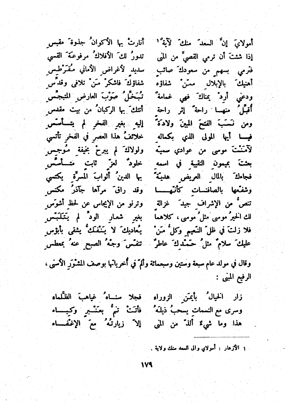 (1) الأزهار: أمولاي وإلى السعد منك ولاية.