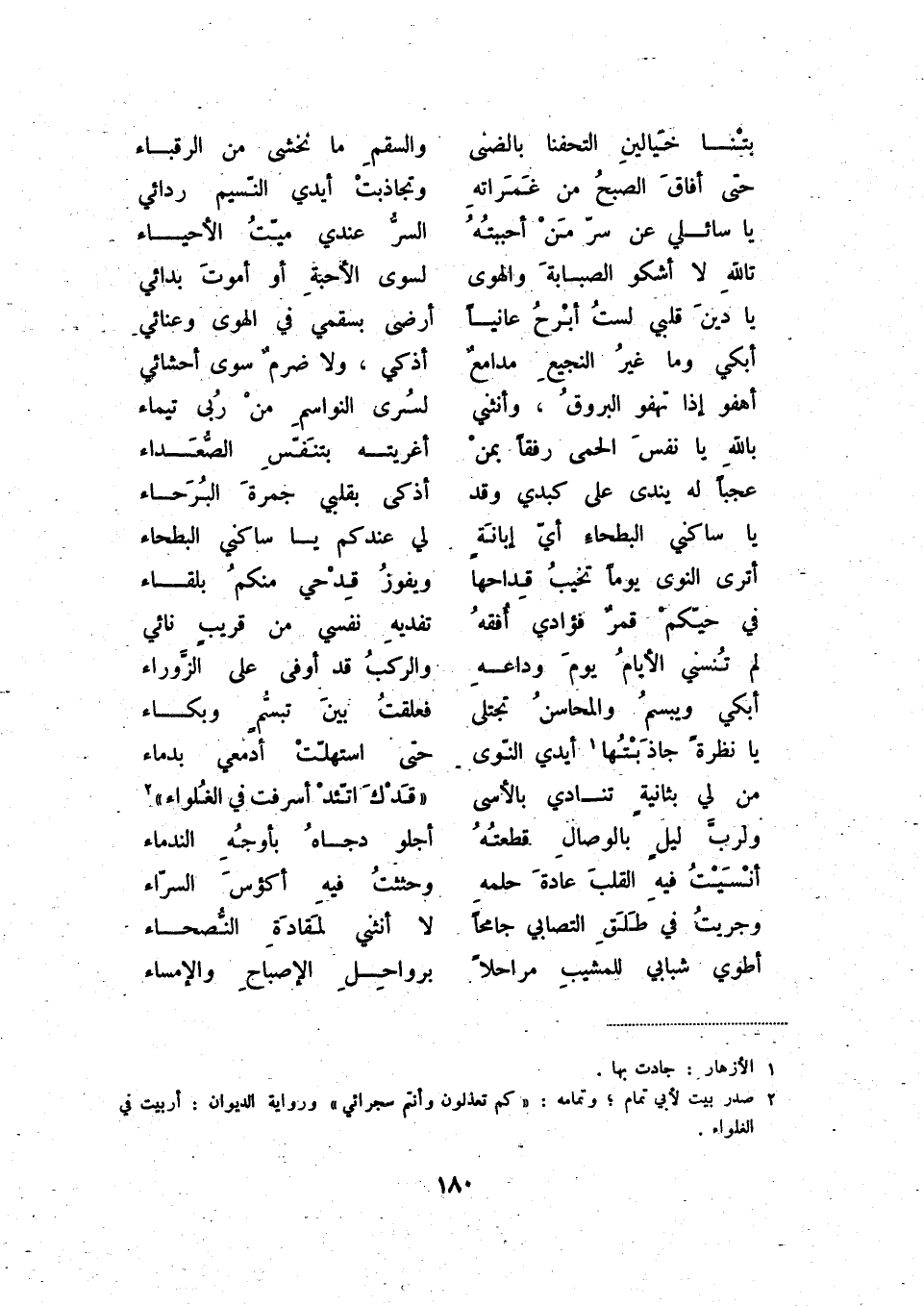 (2) صدر بيت لأبي تمام؛ وتمامه: " كم تعذلون وأنتم سجرائي " ورواية الديوان: أربيت في الغلواء.